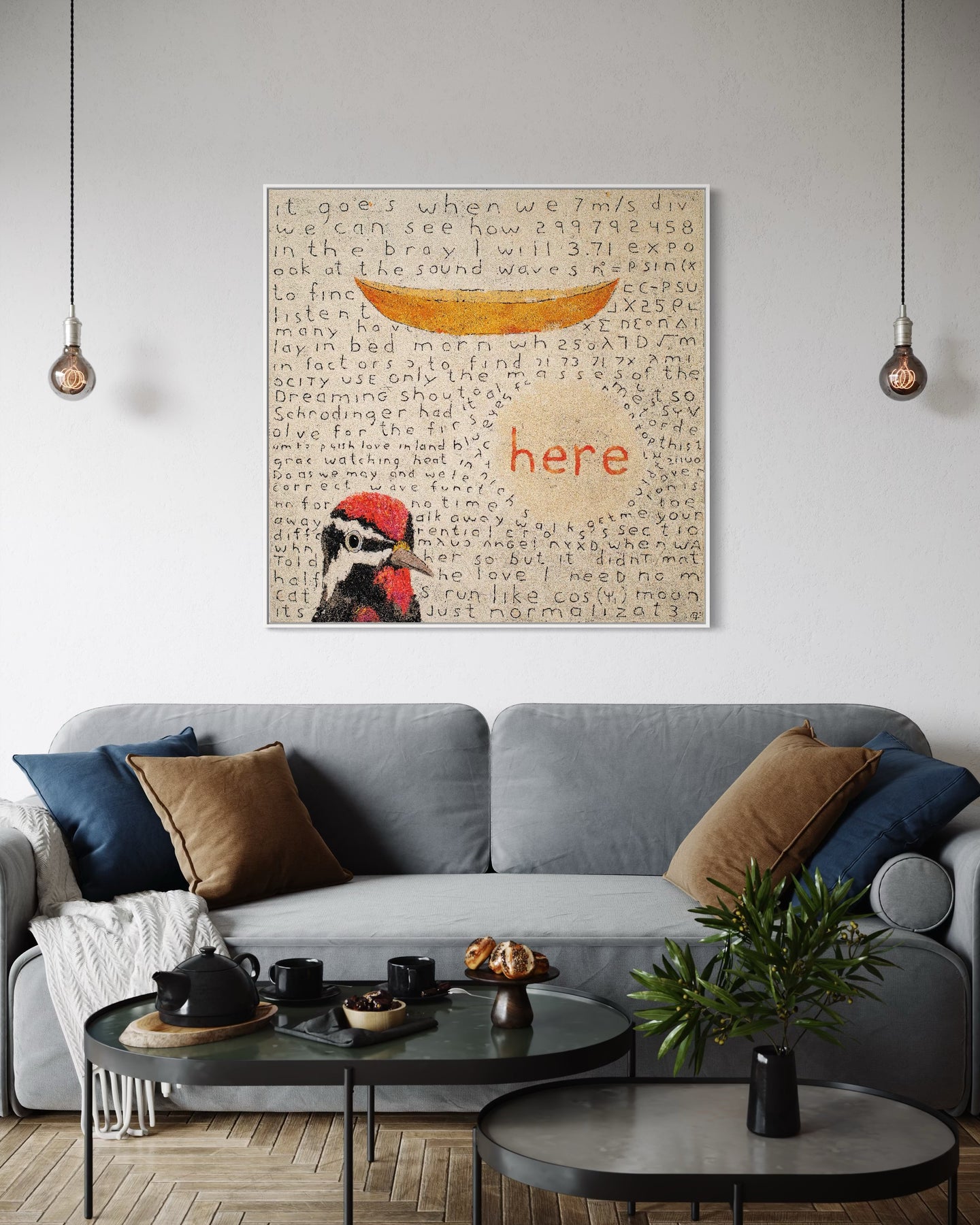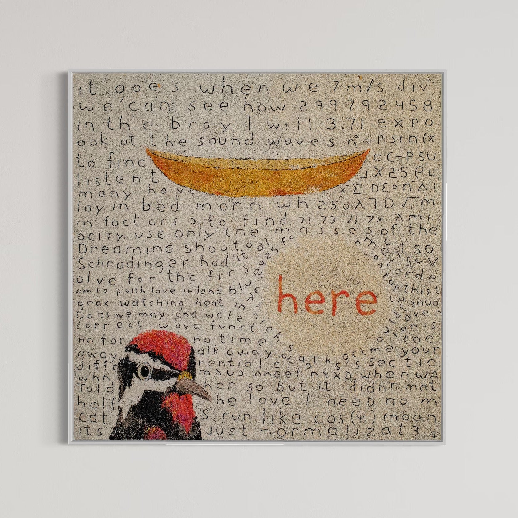 48"x48" abstract piece using crushed volcanic rock and acrylic paint featuring a beige background.
