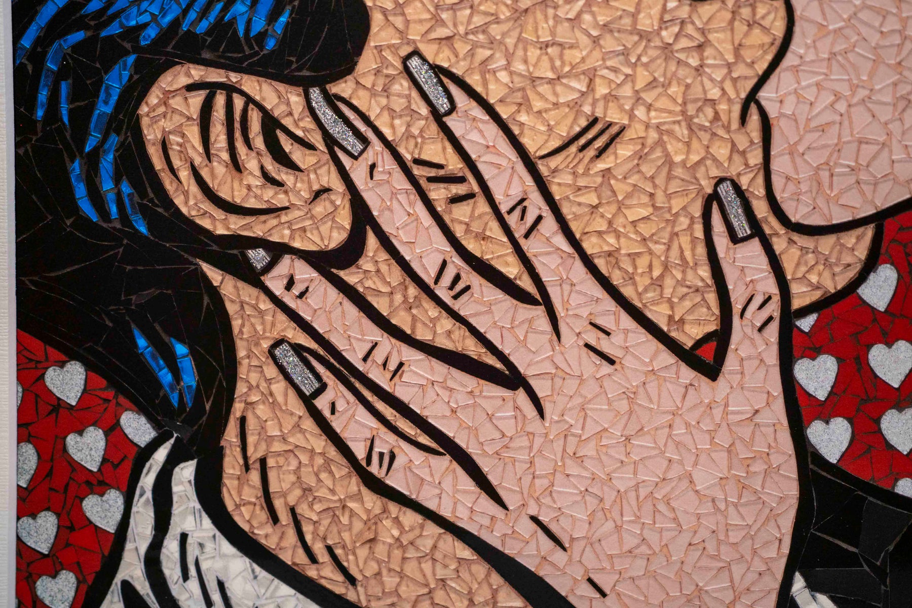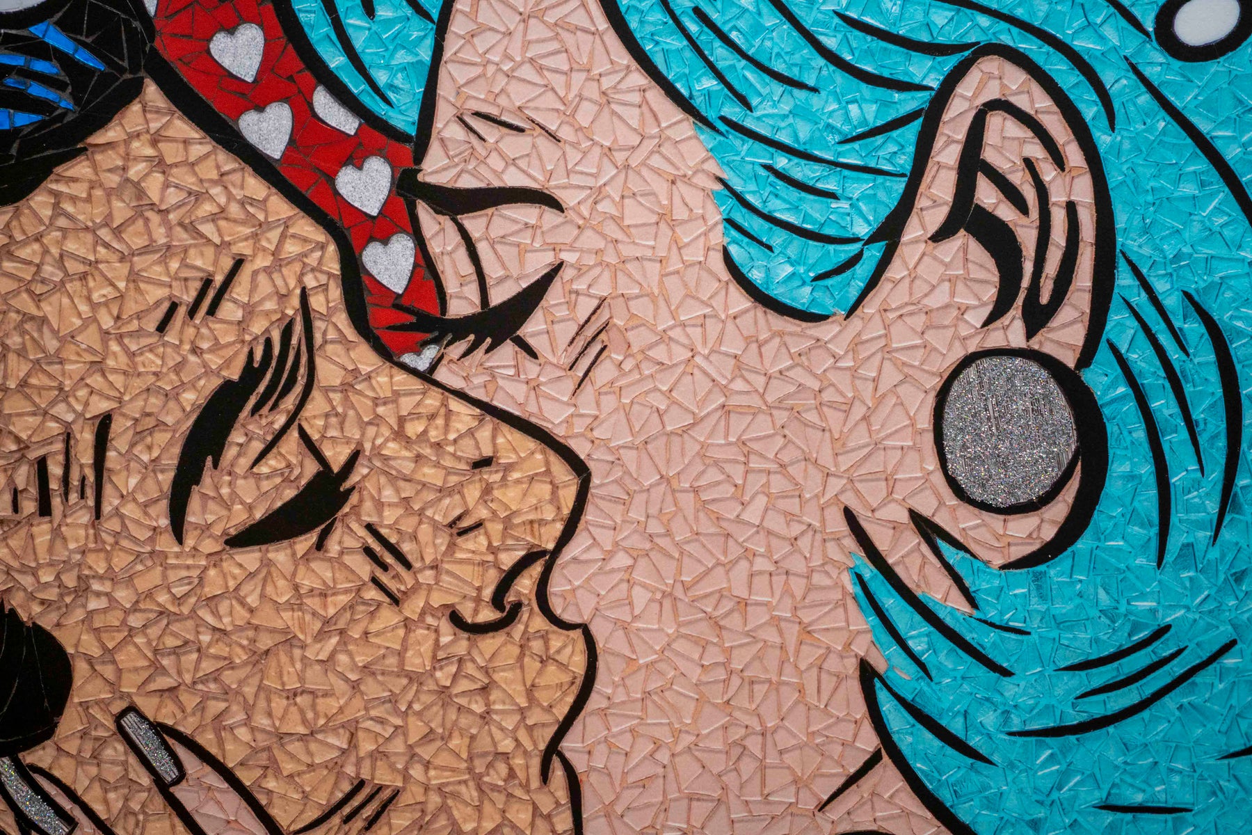Sarah Fishbein, a contemporary glass mosaic artist based in the Atlantic Highlands of New Jersey, has been pushing the boundaries of visual art for nearly 20 years. Initially grounded in editorial video production, Fishbein artistic journey has led her to embrace the bold, graphic style of Lichtenstein Pop Art Mosaics. She infuses her mosaics with the vibrant, comic-book aesthetic of 1950s and romance comics, creating striking reinterpretations of pop culture through the timeless medium of glass.