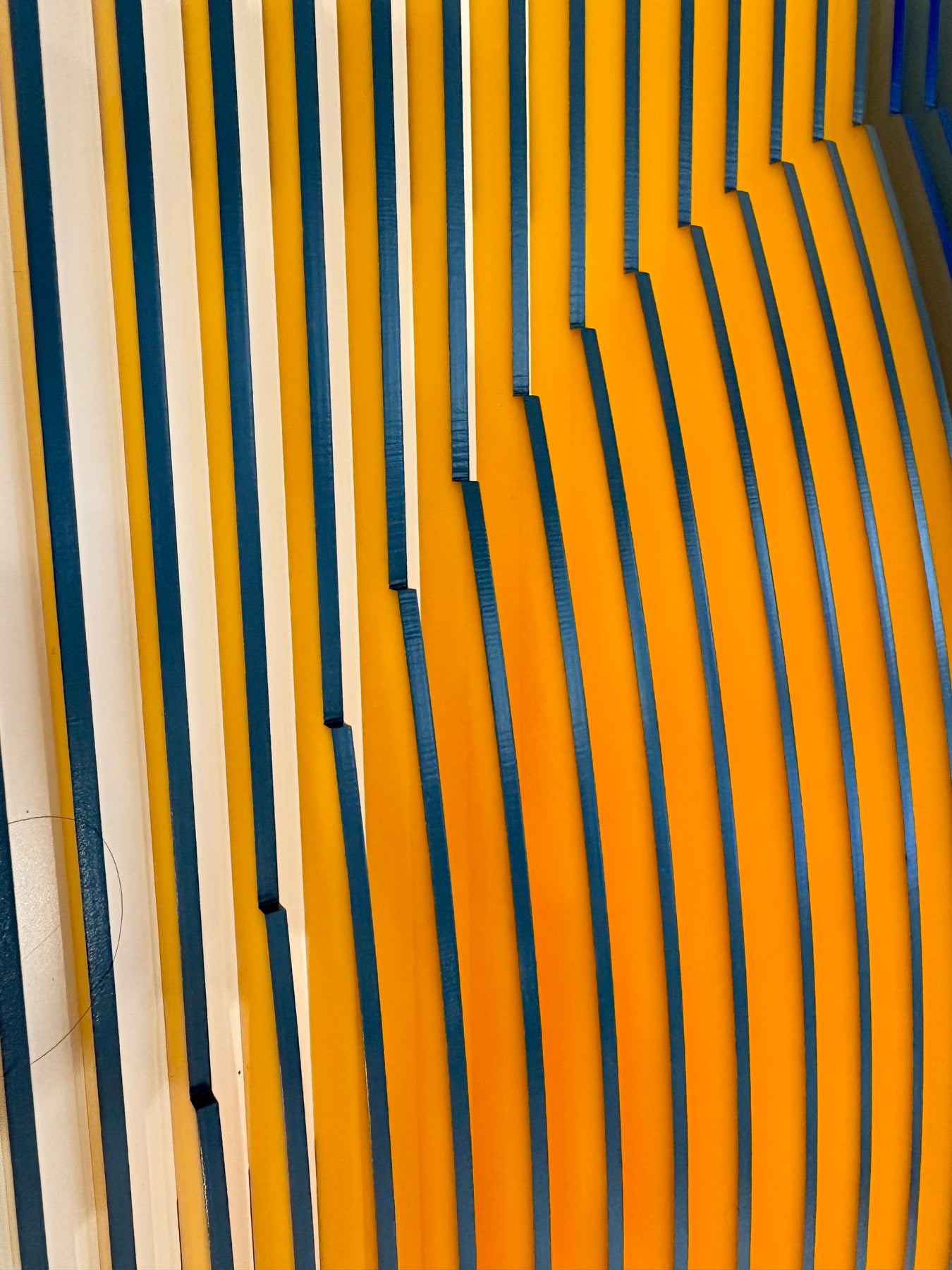 Margulis is drawn to scenes that allow him to explore composition in its most basic geometric forms: symmetry, asymmetry, volume, shapes, forms, limits, transitions and more. The challenge of creating balanced compositions in unexpected ways is fundamentally what attracts the artist’s eye and fuels his ideas. The artist begins with 3D digital software from which he designs and maps his 3D objects and compositions, ultimately cutting them into layers from different types of plastic and aluminum composites. Most of Jose’s work uses acrylic sheets and aluminum composites in various colors, textures, and patterns, often inspired further by traditional Mexican arts.
