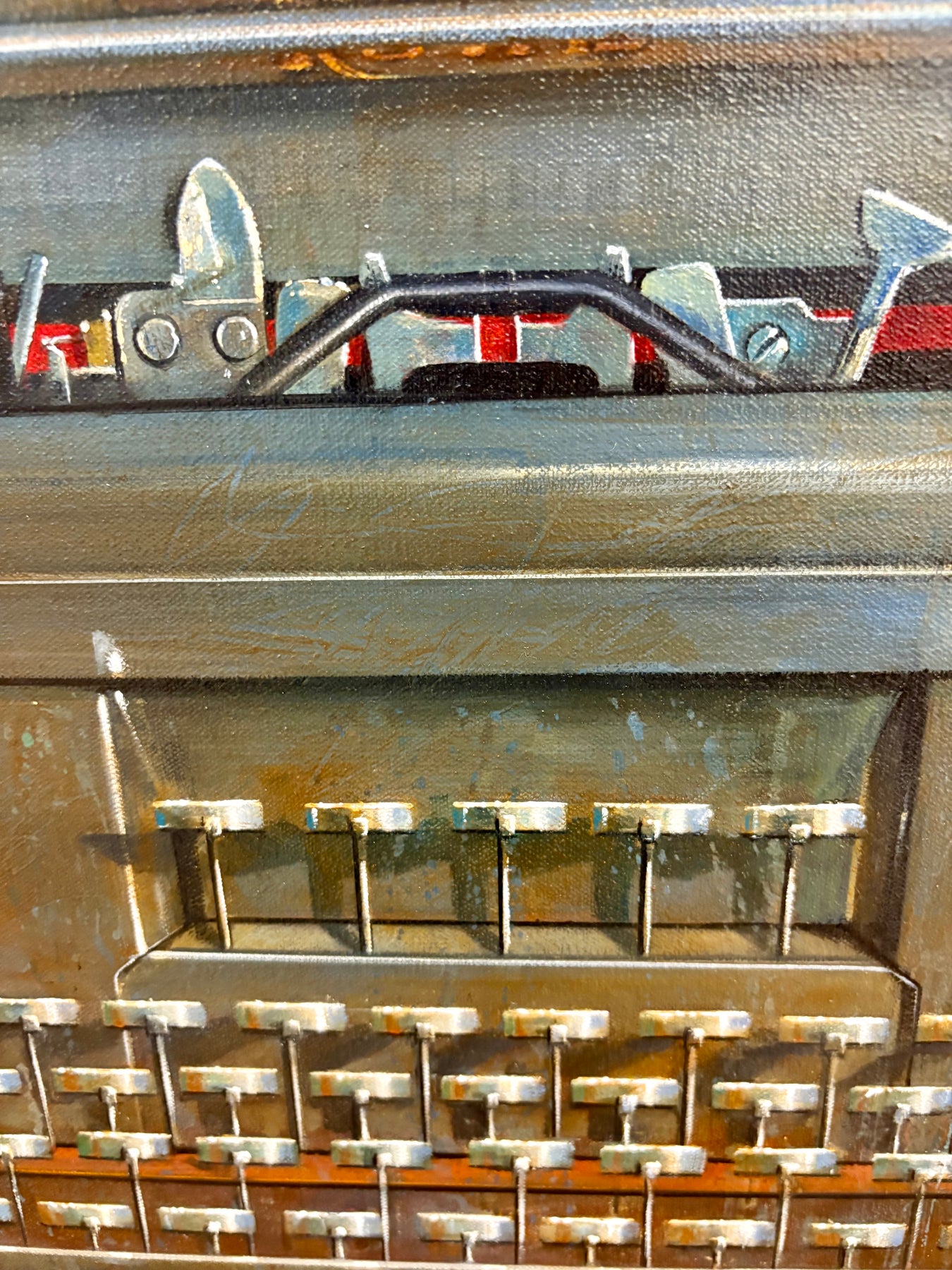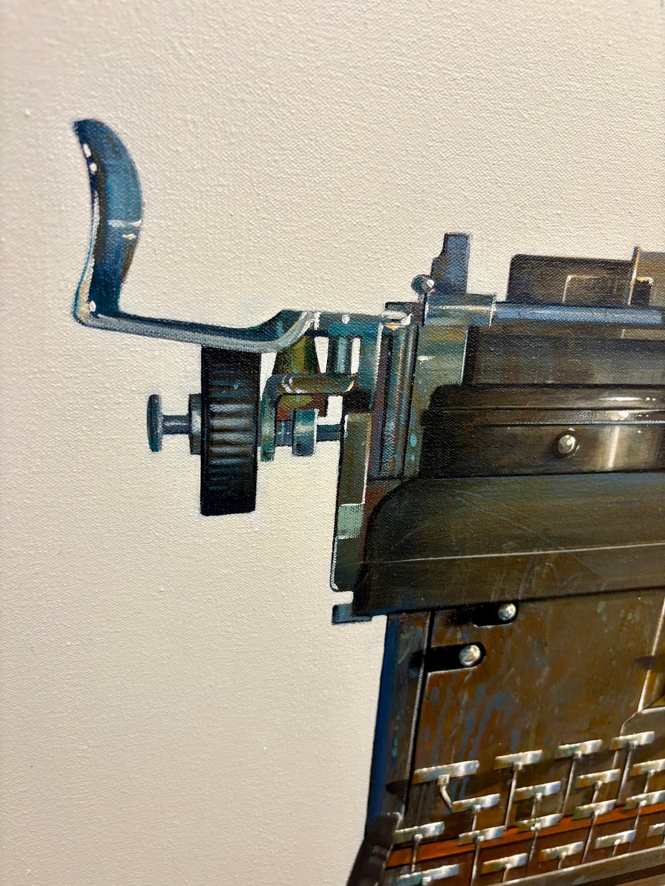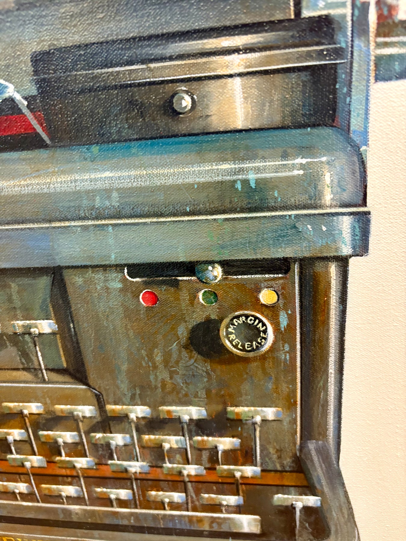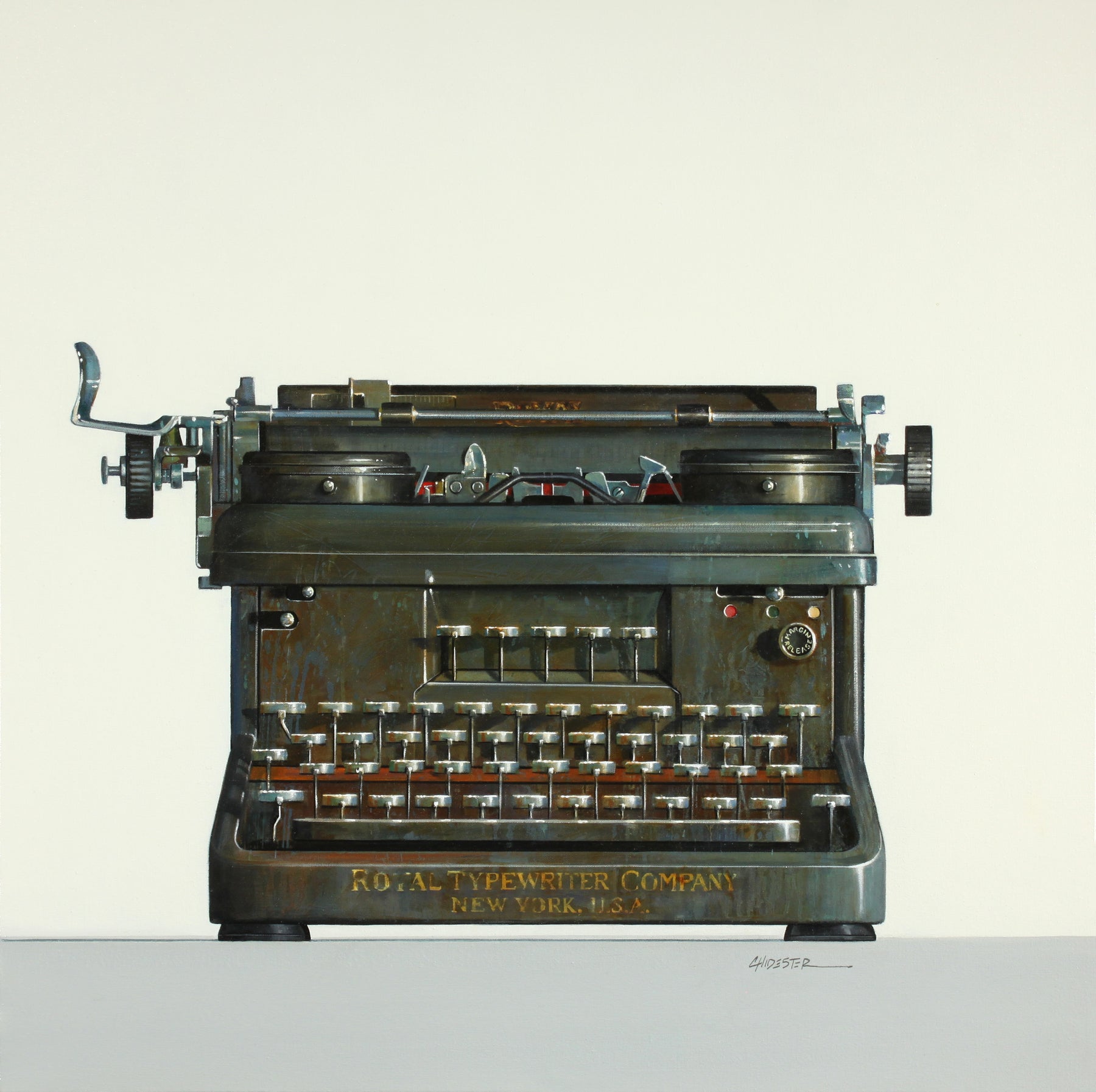 In her gorgeous photo-realistic still-lifes, American oil painter Wendy Chidester pays homage to lost relics of the past. Artifacts like vintage cameras and projectors, 40’s trunk luggage, bubblegum machines, childrens’ pedal cars and tricycles, and old telephones and typewriters are represented nostalgically in her work. She frames these objects as icons, memorializing the color and ingenuity of the past.