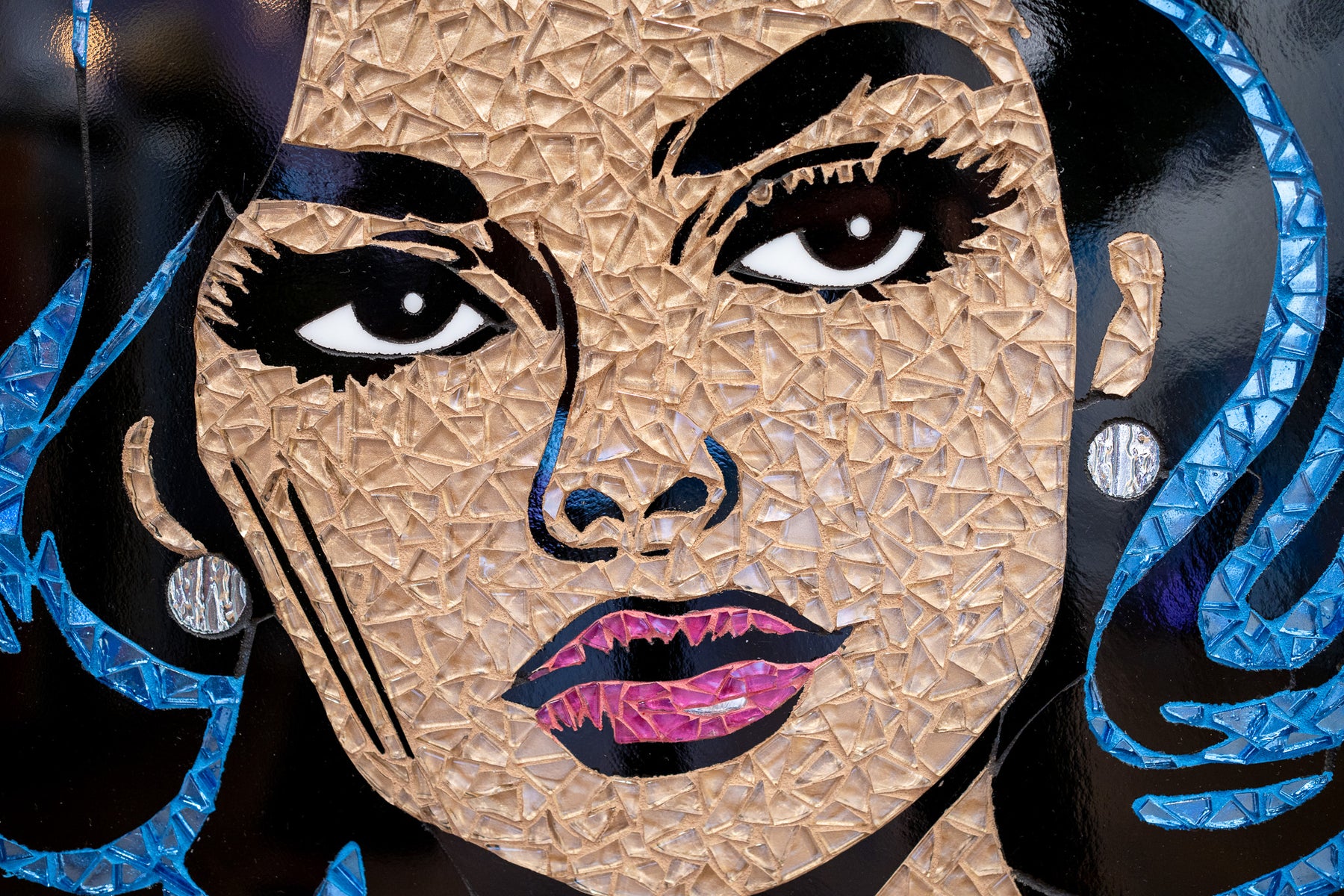 Sarah Fishbein, a contemporary glass mosaic artist based in the Atlantic Highlands of New Jersey, has been pushing the boundaries of visual art for nearly 20 years. Initially grounded in editorial video production, Fishbein artistic journey has led her to embrace the bold, graphic style of Lichtenstein Pop Art Mosaics. She infuses her mosaics with the vibrant, comic-book aesthetic of 1950s and romance comics, creating striking reinterpretations of pop culture through the timeless medium of glass.