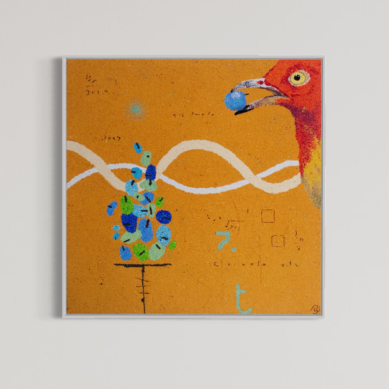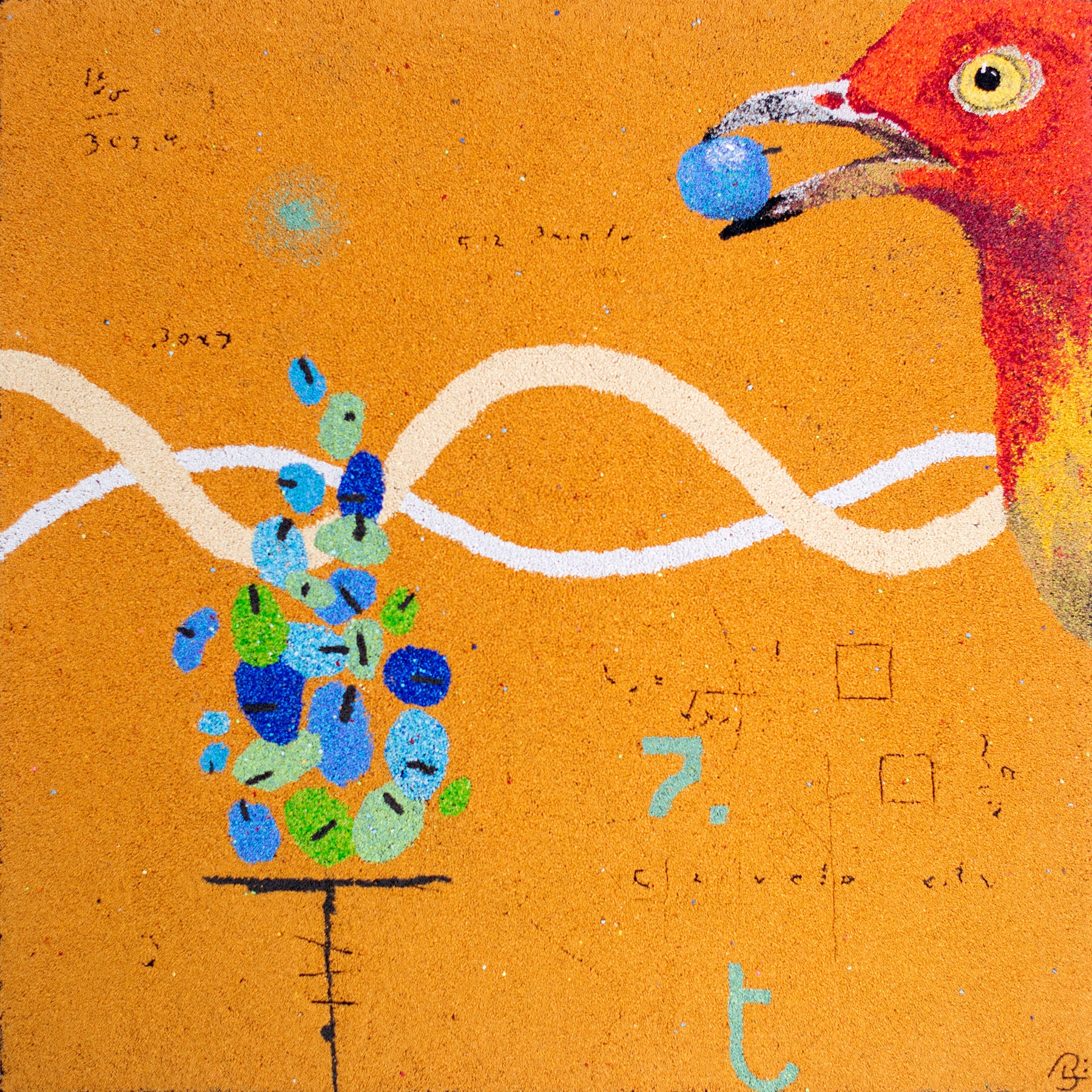 Bob Landström is an artist who primarily works with crushed, pigmented volcanic rock. His abstract paintings, with their highly granulated texture and color combinations, only achieved through such a medium, reconsider our relationship with meaning by eliciting the iconography of ancient languages, science, religions, and mysticism.