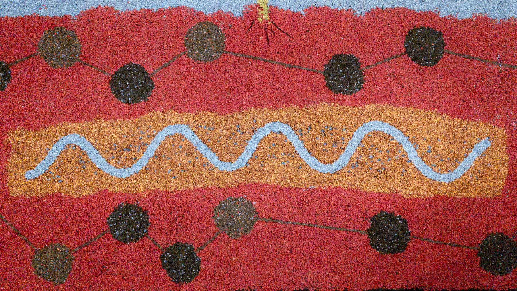 Pigmented crushed volcanic rock on canvas. Framed and ready to hang.