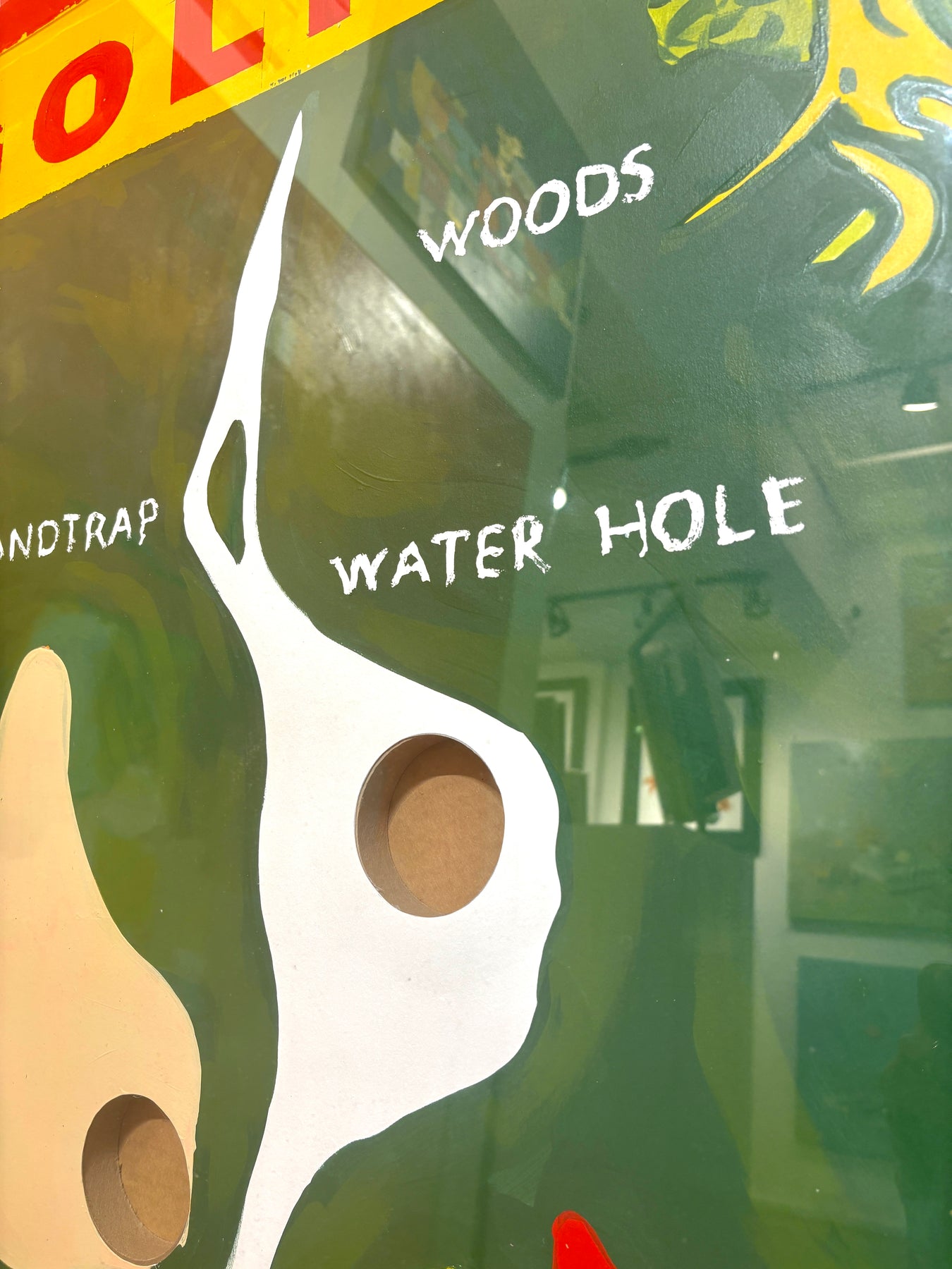 - Acrylics on rag paper, acid free foam board, cardboard, plexiglass, enamel painted chrome spheres, and plywood