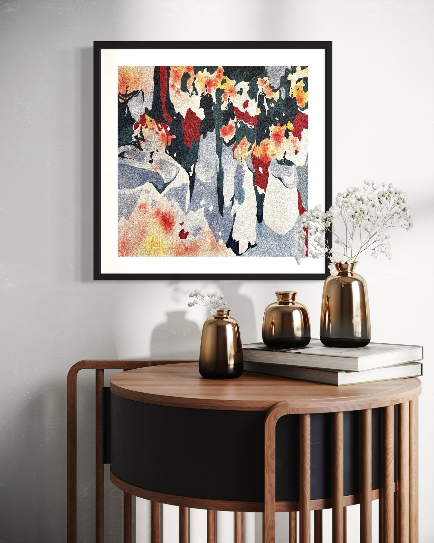 • Size: 14" x 14" original painting in a 17" x 17" white window matting