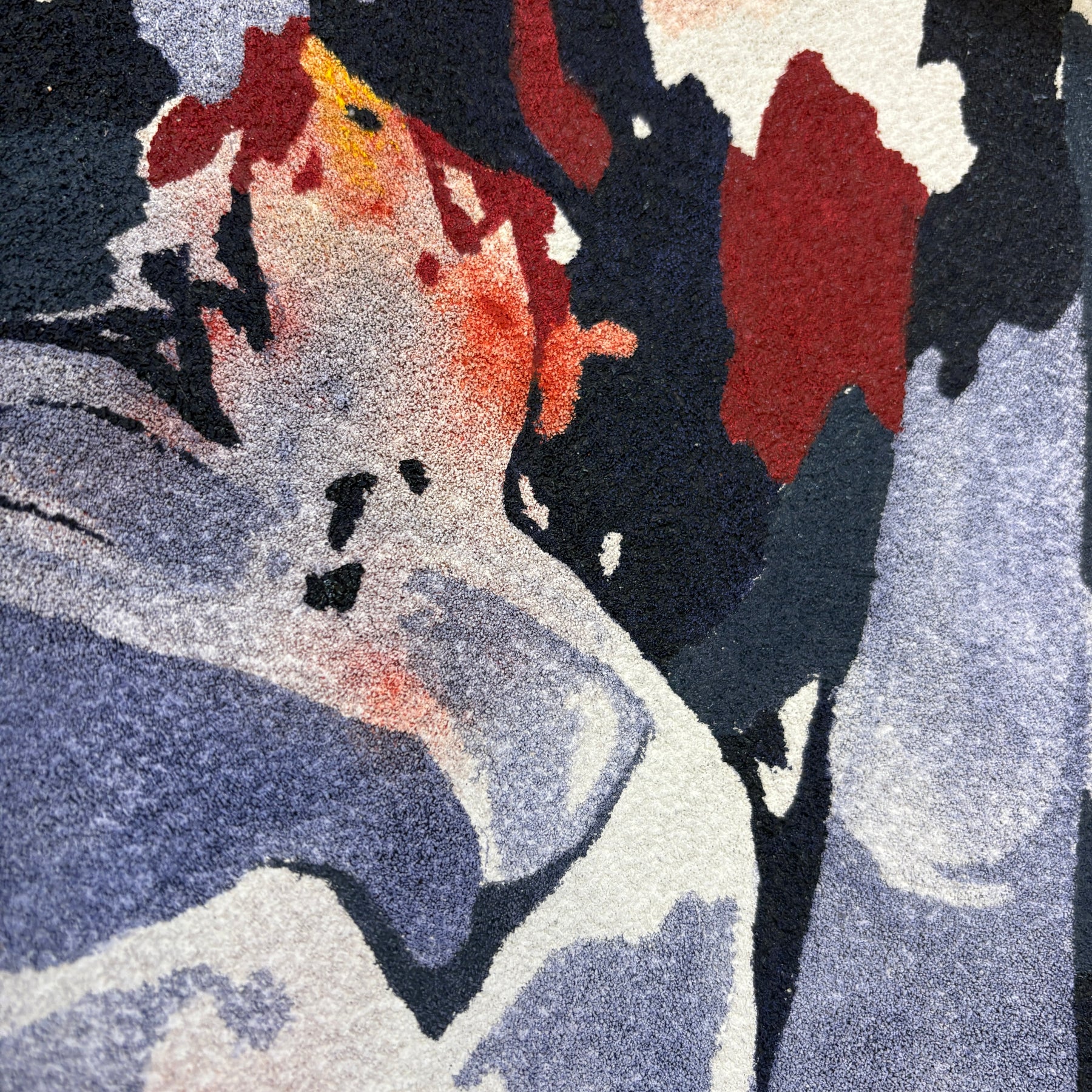 Erin Touey’s work straddles the line between abstraction and representation in her new series of pumice-primed canvas oil paintings. Touey utilizes fluid shapes, variation of line weight, non representational color, distortion of perspective, and in this series, the texture of the pumice primed canvas to bring her often tangible subject matter into the abstract realm. With a limited palette consisting only of Phthalo Blue, Cadmium Yellow, and Quinacridone Magenta, Touey challenges herself to mix all of her colors. The white of the canvas is preserved deliberately, the negative space making shapes that sometimes jump forward or fall back.