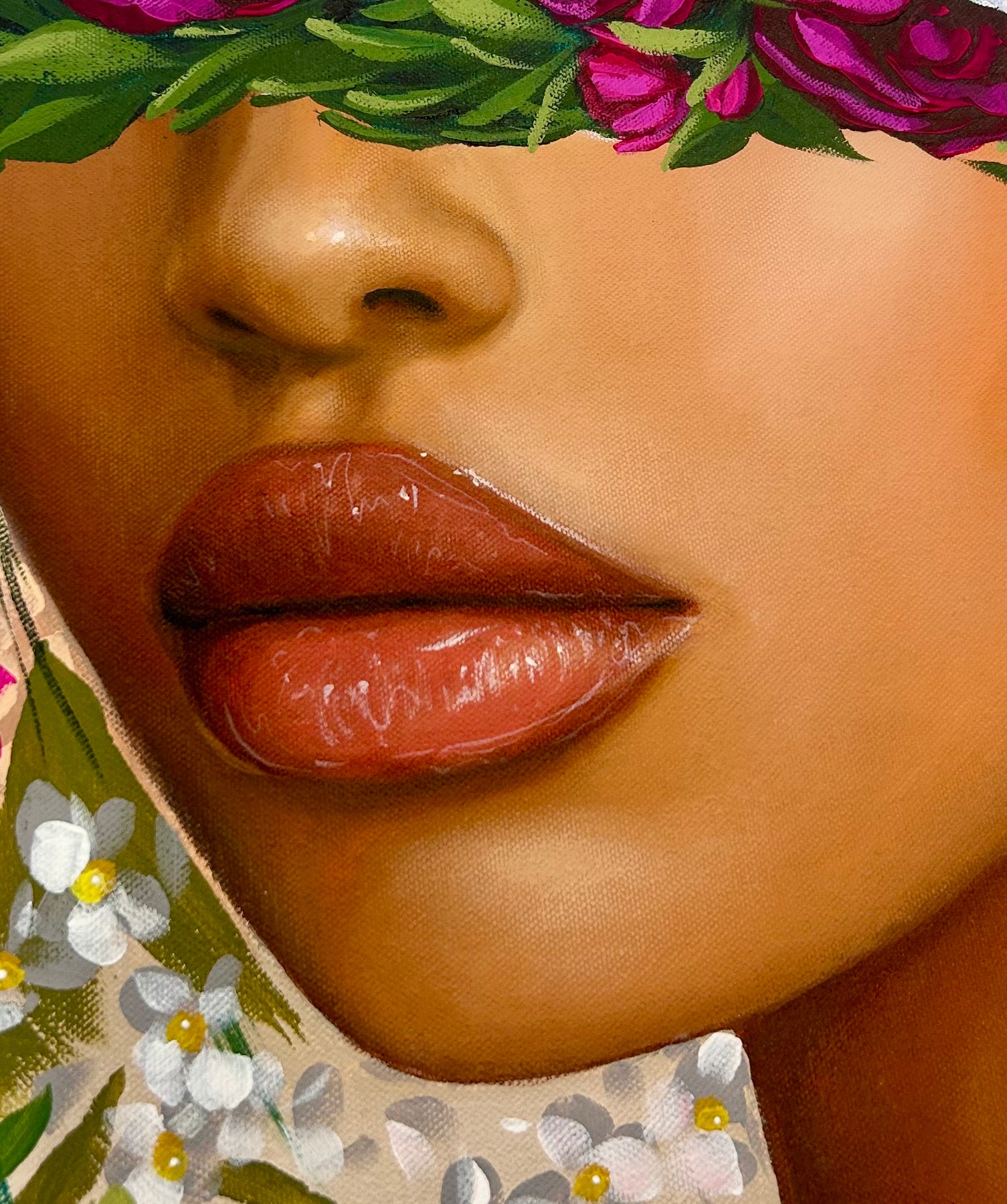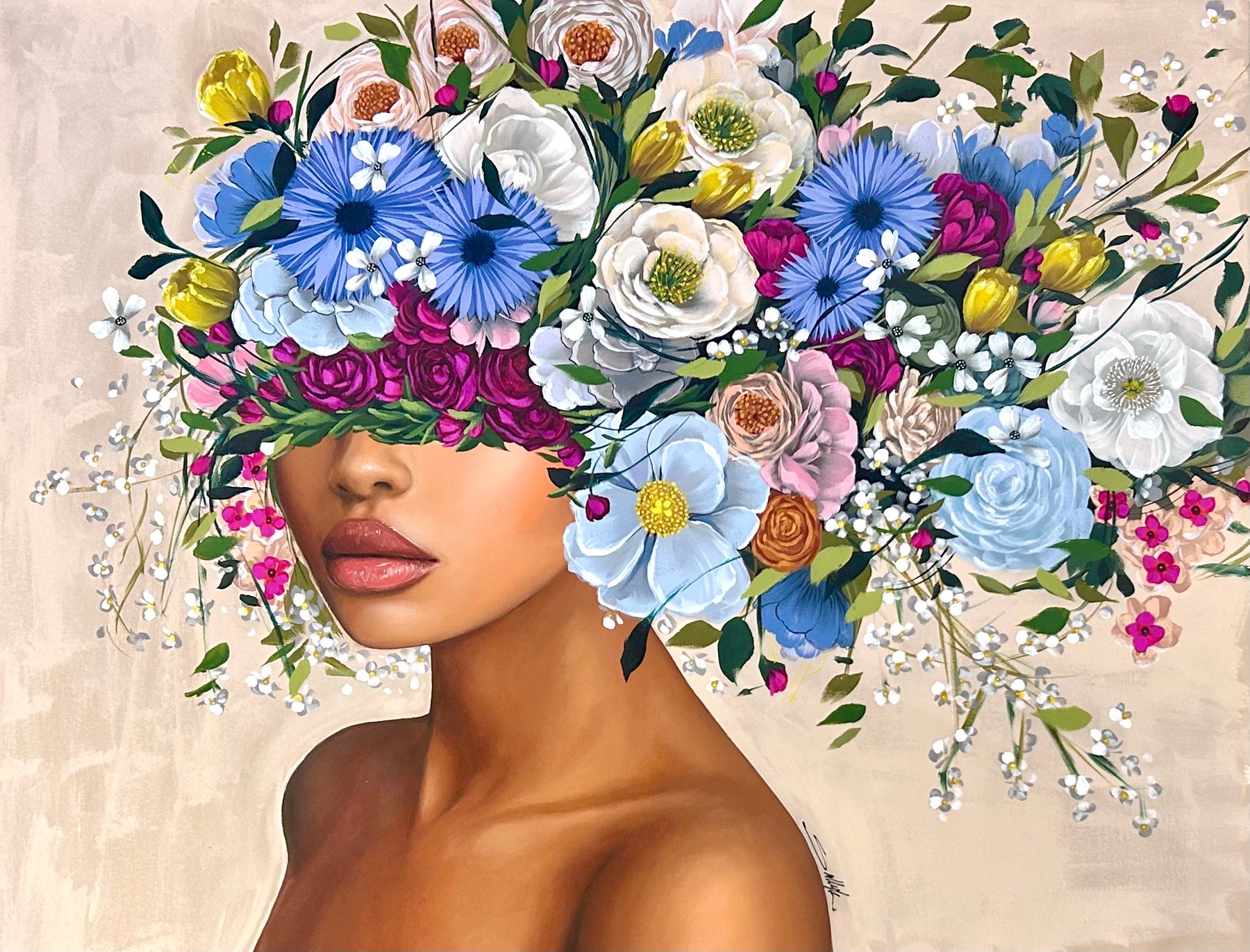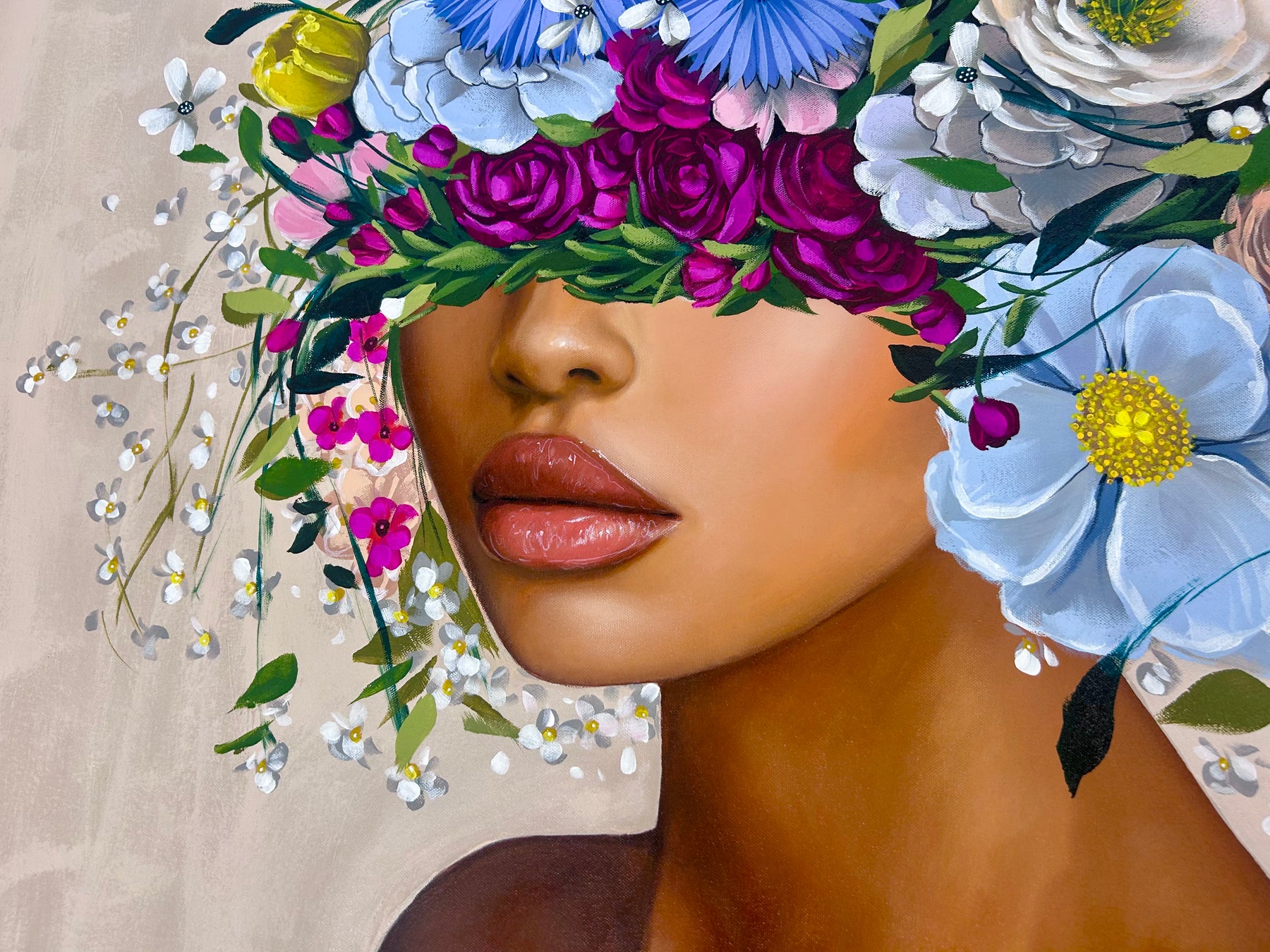 Lebanese portraiture artist Sally Khoury (Sally K) paints the feminine gaze in vivid color. Taking inspiration from fashion, pop culture, and photography, Khoury blends realistic and abstract elements to communicate the totality of the female form, which is often both mischievous and serious, sensual and aloof. Her paintings can be found in the private collections of American pop stars Jesse McCartney and Kelly Clarkson.