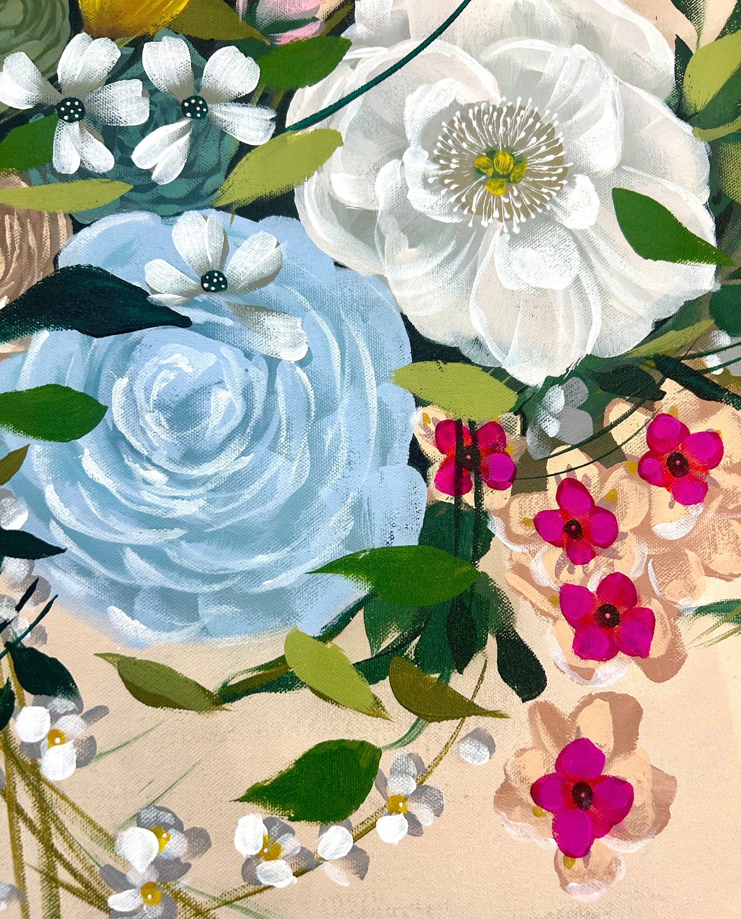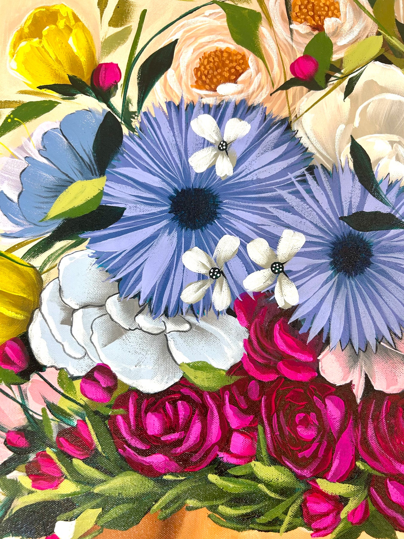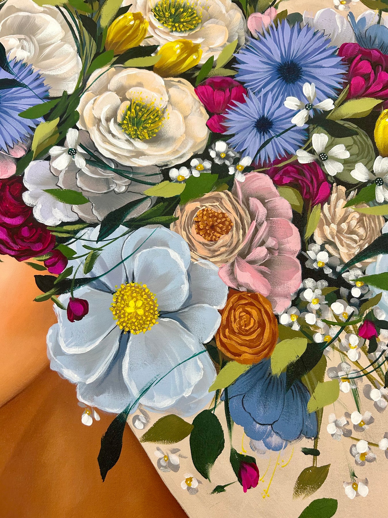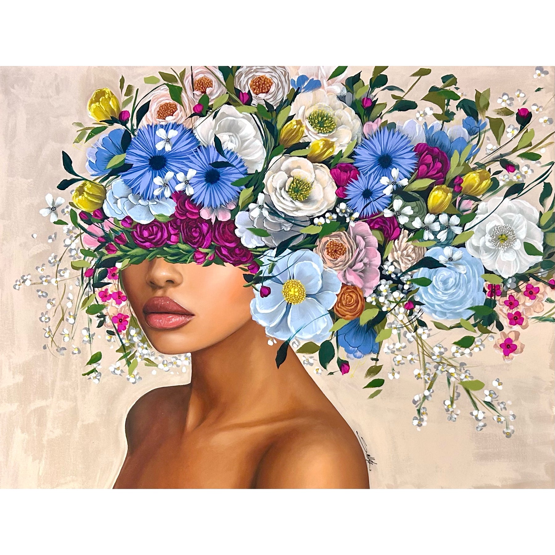 Lebanese portraiture artist Sally Khoury (Sally K) paints the feminine gaze in vivid color. Taking inspiration from fashion, pop culture, and photography, Khoury blends realistic and abstract elements to communicate the totality of the female form, which is often both mischievous and serious, sensual and aloof. Her paintings can be found in the private collections of American pop stars Jesse McCartney and Kelly Clarkson.