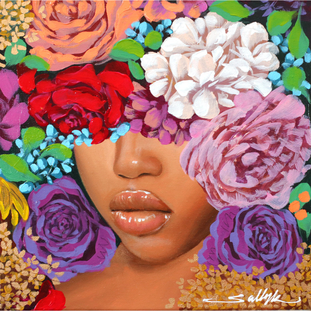 In Full Bloom III, artwork by Sally K. Acrylic paint on canvas. 12 by 12 inches.