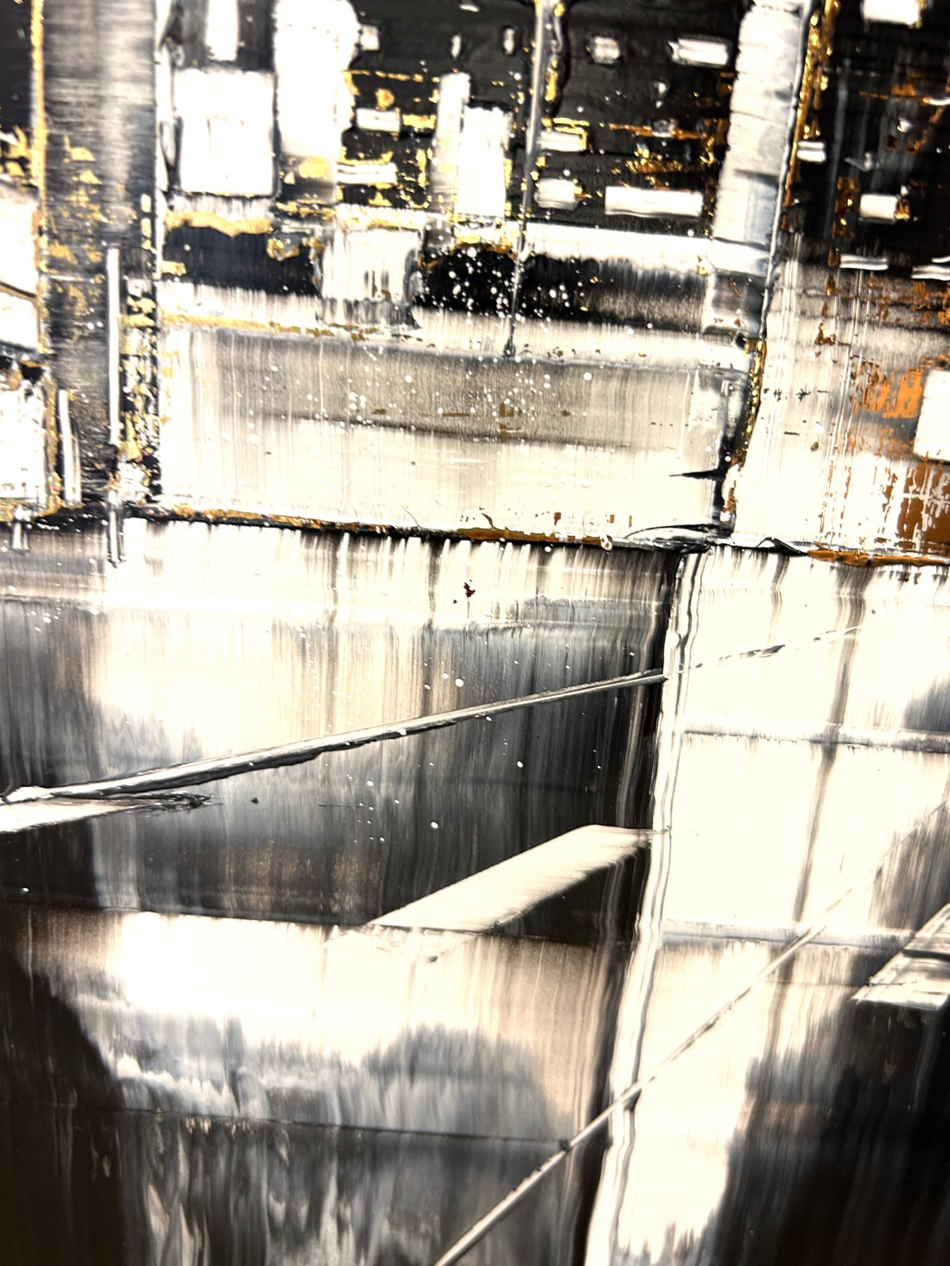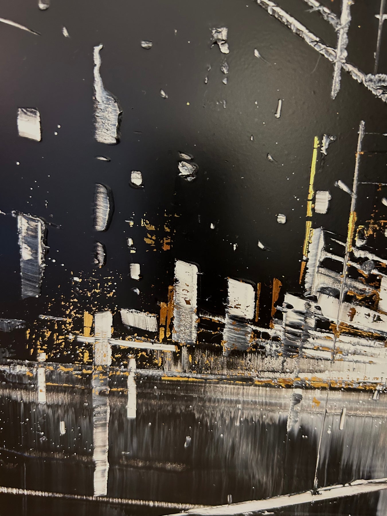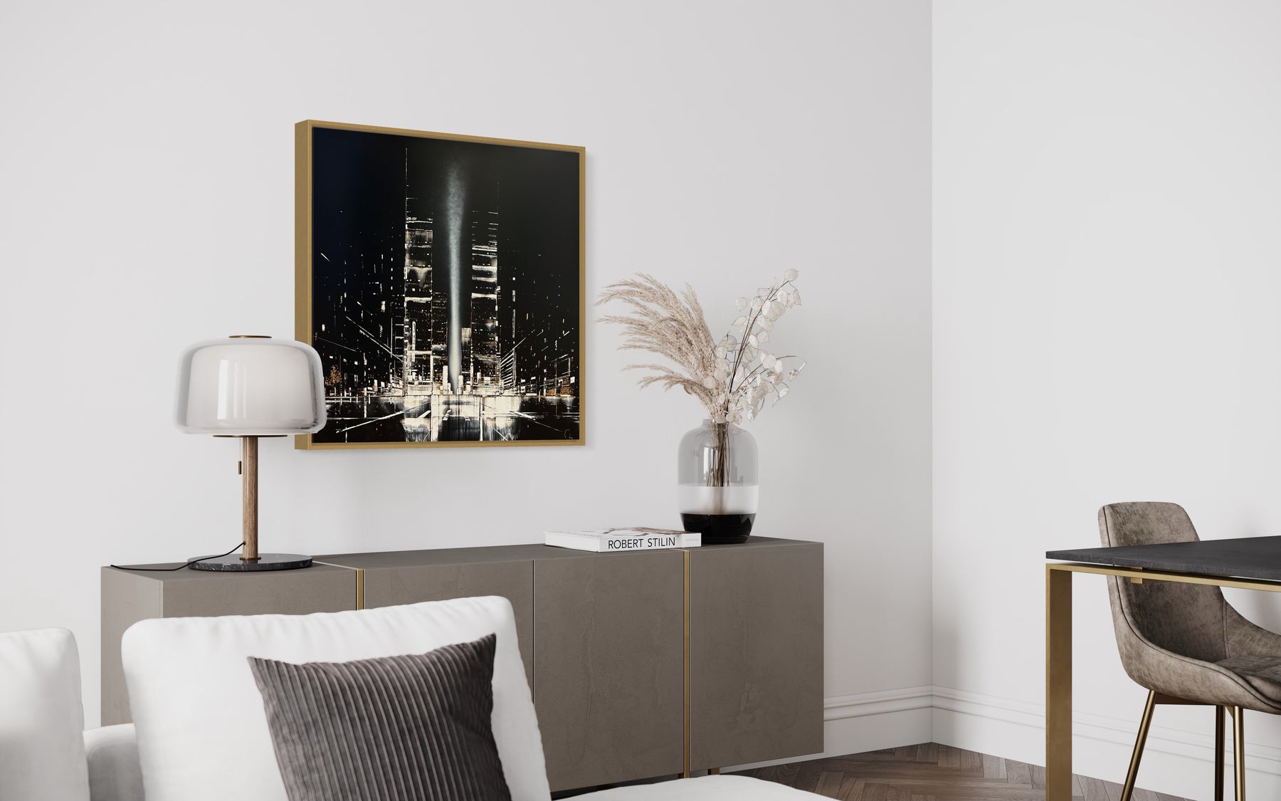 Julien Rey's story begins like all great stories: with an impossible dream. With achromatopsia (the absence of color vision), the artist sees only in black and white. Yet, this condition did not prevent him from traveling to the borders of Burma, from changing his life (he became a Buddhist monk), or from embarking on his art. From his trip to Burma, he brought back a perfect mastery of gold leaf and Chinese lacquer, a characteristic element in his work. His technique based on lacquer worked with a knife and gold leaf inlays places light at the center of his works. Marked by Zen philosophy, he creates minimal compositions that appear as suspended moments and poetic pauses. Julien Rey takes us on a journey through his paintings to urban landscapes and far-off lands.