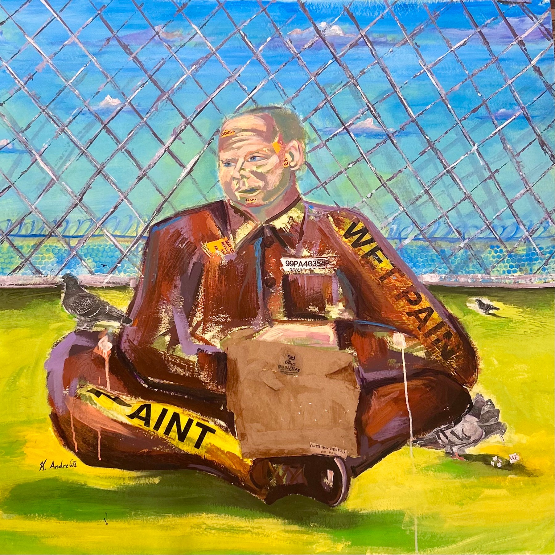 Keith Andrews: “I wanted to show in this piece a person who’s a decoy, a front to people, to stay away, but wanting to clear his conscience by any means!”