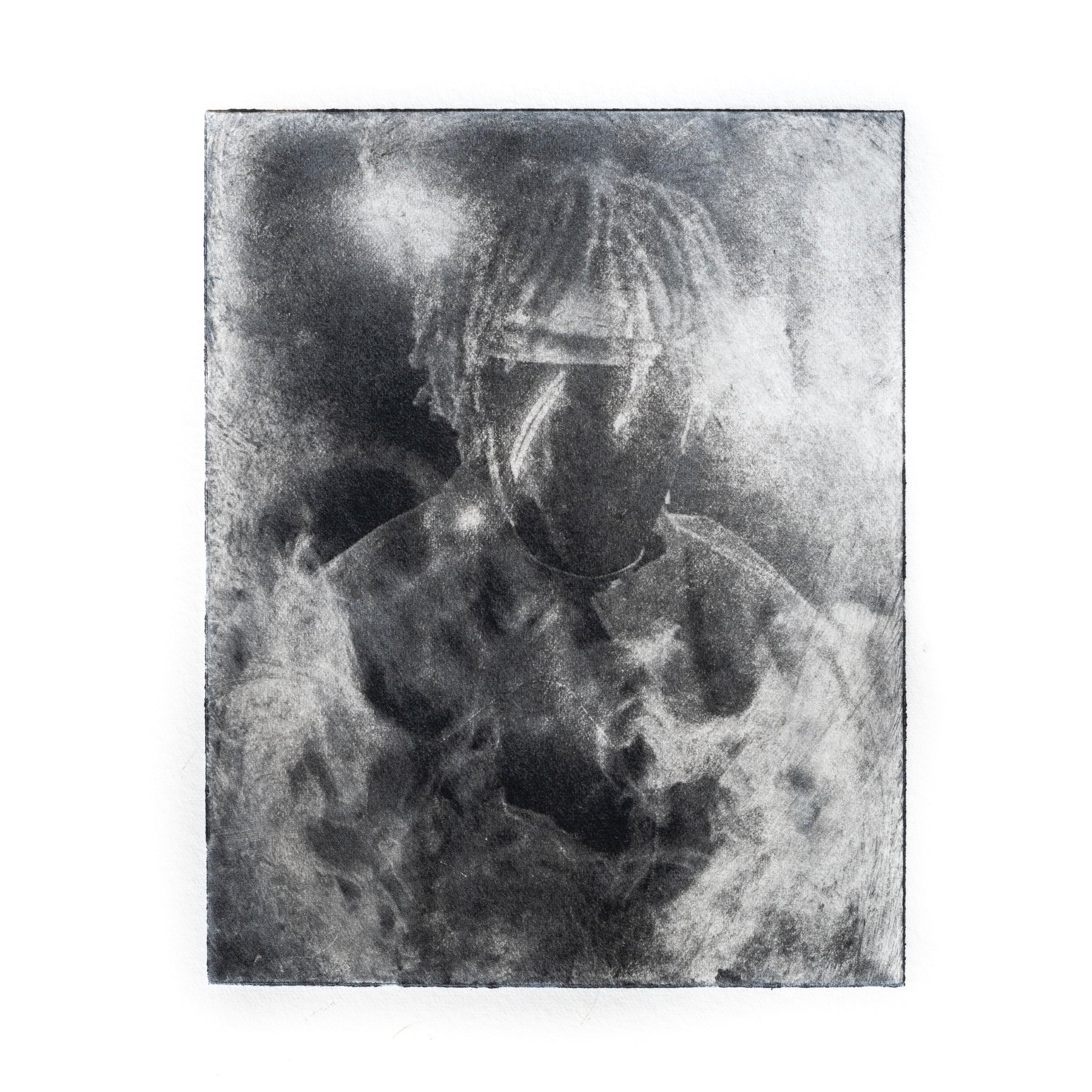 cloudy silhouette portrait blur face hair light dark black and white print