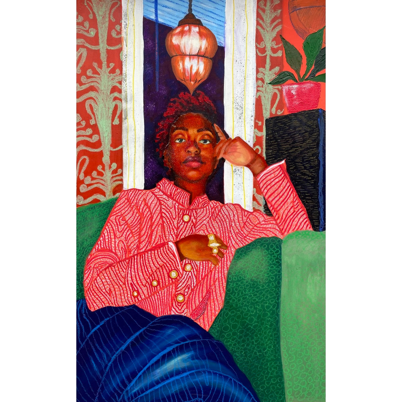 Chelsey Luster is a Philadelphia-based curator, educator, and visual artist with a Bachelor of Fine Arts from Tyler School of Art and Architecture. Luster's work explores the complexities of safe spaces within Queer and Black culture through mixed media paintings and installations. By combining oil and fluorescent acrylic paints, fabric, and other materials, she creates imaginative havens and gives her models agency over their images while providing a supportive environment for vulnerability and self-reflection. Luster's involvement with other Philadelphia galleries and art spaces helps to reshape the power dynamics between curators and artists to build a care-centered community.
