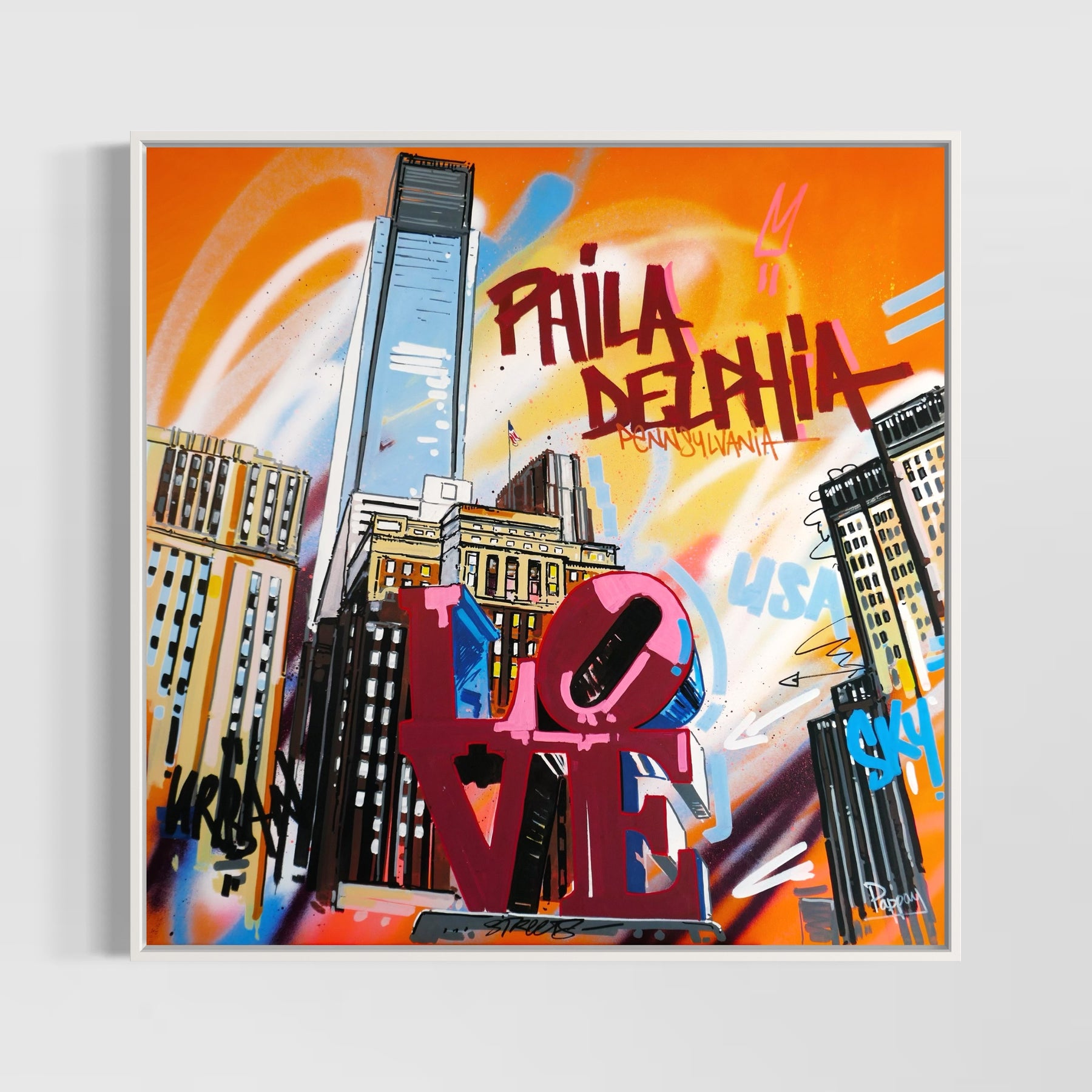 Pappay draws his inspiration from the chaos of cities and their architecture, as well as from graphic design and street art. He has always been fascinated by the relationship between humanity and its environment. The scenes represented in his compositions are devoid of any human presence, where time is suspended, objects and buildings are witnesses of life and history ready to come to life before our eyes. Deeply rooted in urban art, Pappay shines in street art by regularly creating murals.