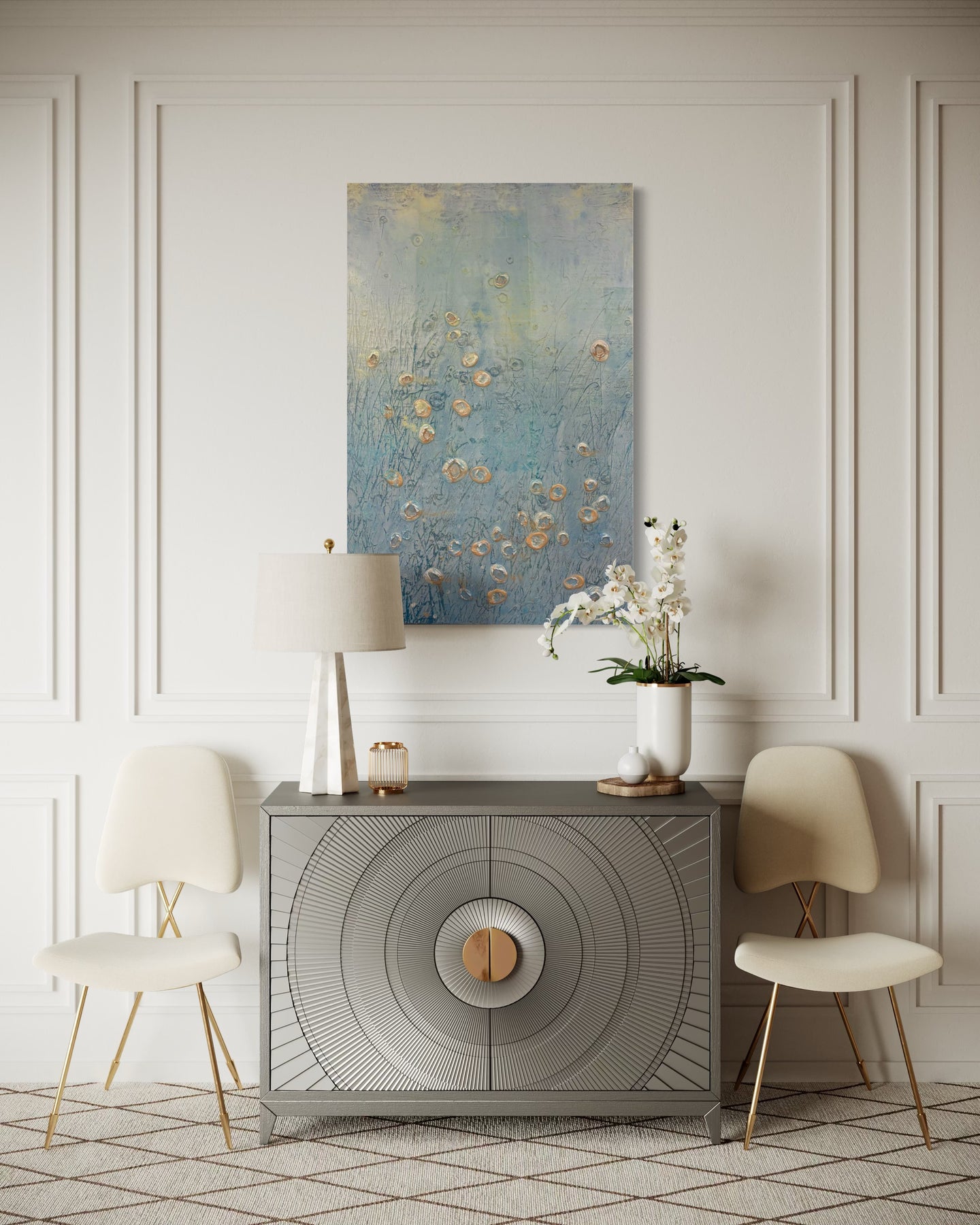 Hudson Valley-born artist, Eric Heitmann, creates beautiful, colorful abstract floral and landscape paintings that rejoice in the colors and textures of nature: swaying water grasses, glistening wildflowers, gliding swans, even the resident perching bald eagle. His landscape style painting verges on the abstract, and is constructed of many layers of acrylic paint to create dimensional landscapes and bright gardens.