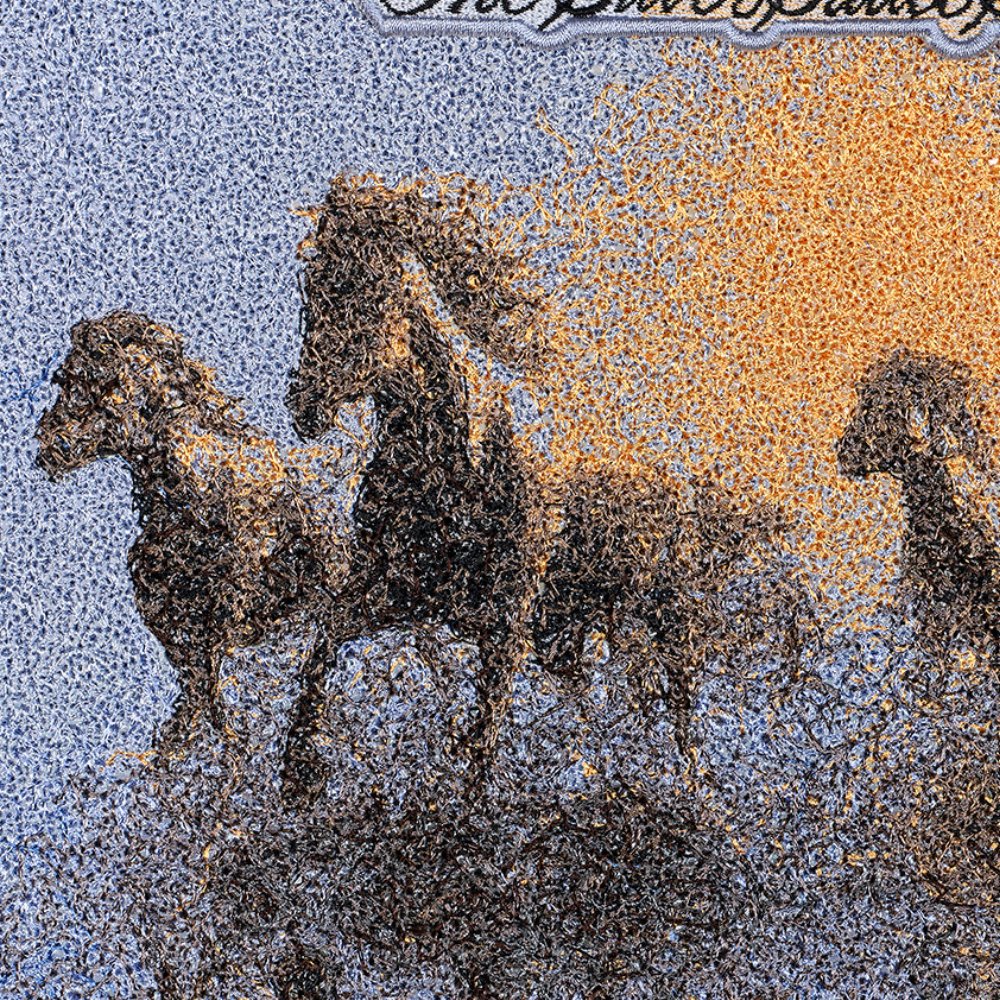The album series begins with a vintage album sleeve, which serves as the foundation for intricate designs created with a variety of techniques such as yarn embroidery and photorealistic embroidery. Each album is carefully embroidered with over 200,000 stitches, taking more than 8 hours to complete. Upon completion, the album is adorned with embroidered patches and other decorative objects, making each one truly unique.
