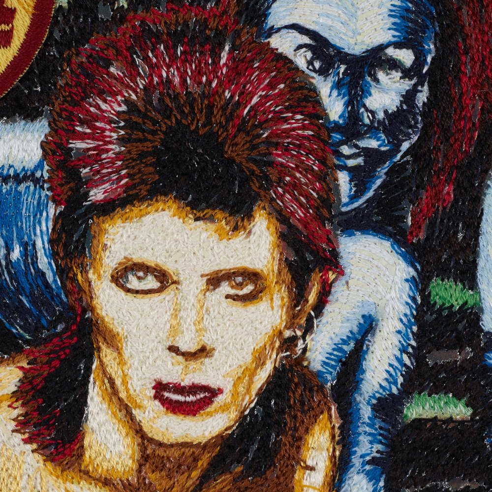 The album series begins with a vintage album sleeve, which serves as the foundation for intricate designs created with a variety of techniques such as yarn embroidery and photorealistic embroidery. Each album is carefully embroidered with over 200,000 stitches, taking more than 8 hours to complete. Upon completion, the album is adorned with embroidered patches and other decorative objects, making each one truly unique.