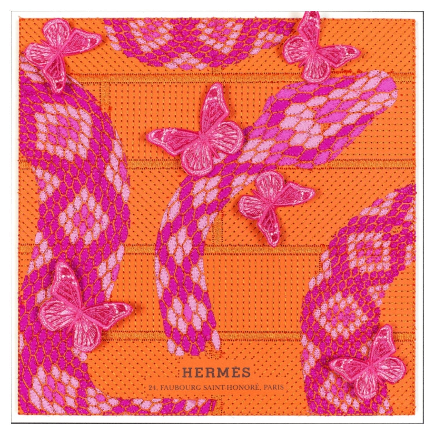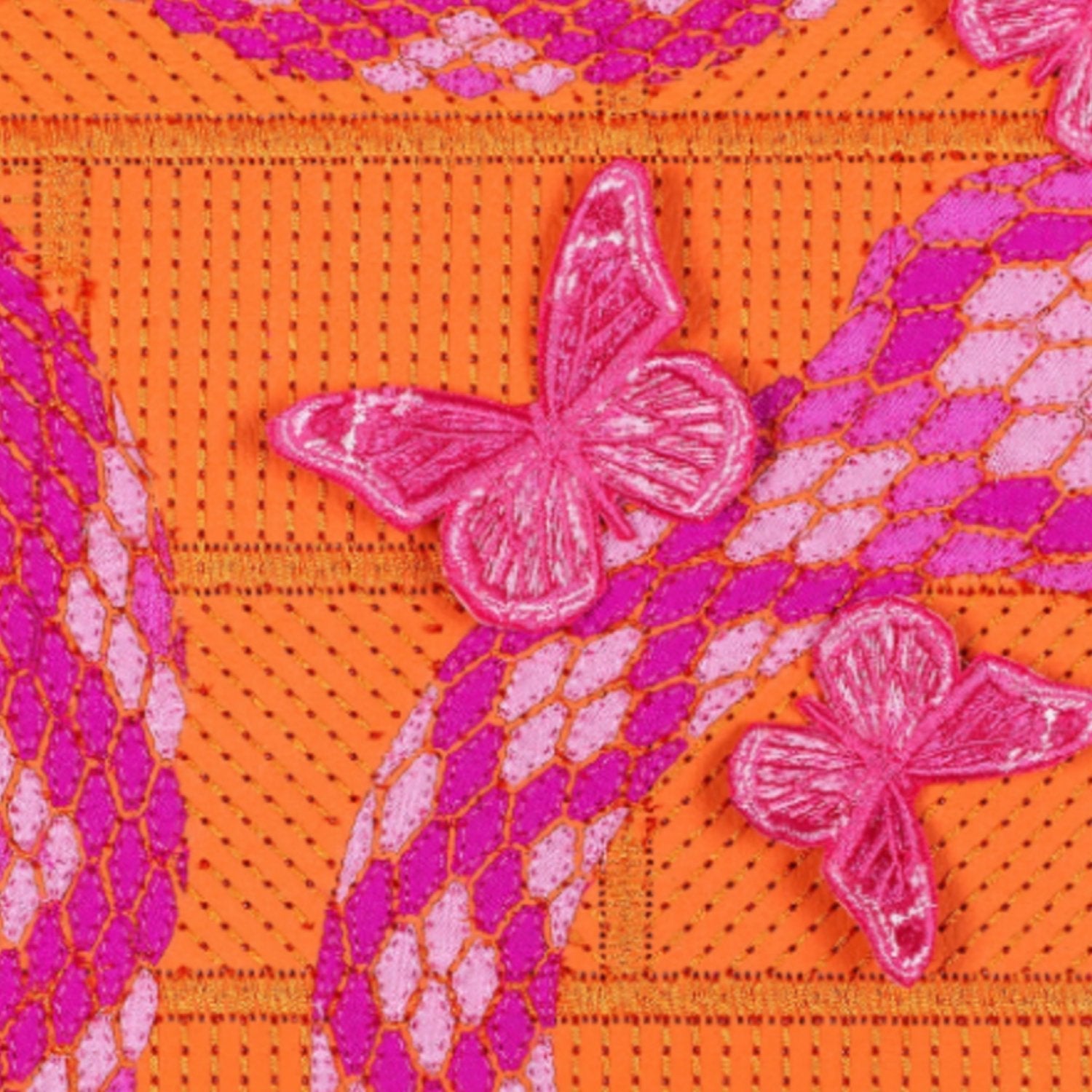 Each serpent is crafted using a multitude of silk appliqué pieces, constructed from rich silk twills blended with luxurious silk scarves. The serpents are then meticulously embroidered onto the luxury boxes, with additional embroidered butterflies enhancing the piece's overall dimension.