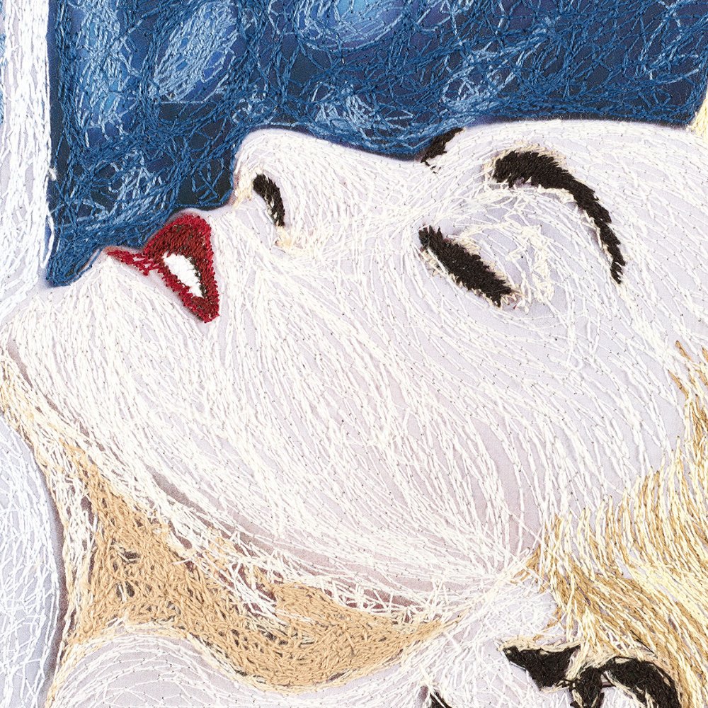 The album series begins with a vintage album sleeve, which serves as the foundation for intricate designs created with a variety of techniques such as yarn embroidery and photorealistic embroidery. Each album is carefully embroidered with over 200,000 stitches, taking more than 8 hours to complete. Upon completion, the album is adorned with embroidered patches and other decorative objects, making each one truly unique.