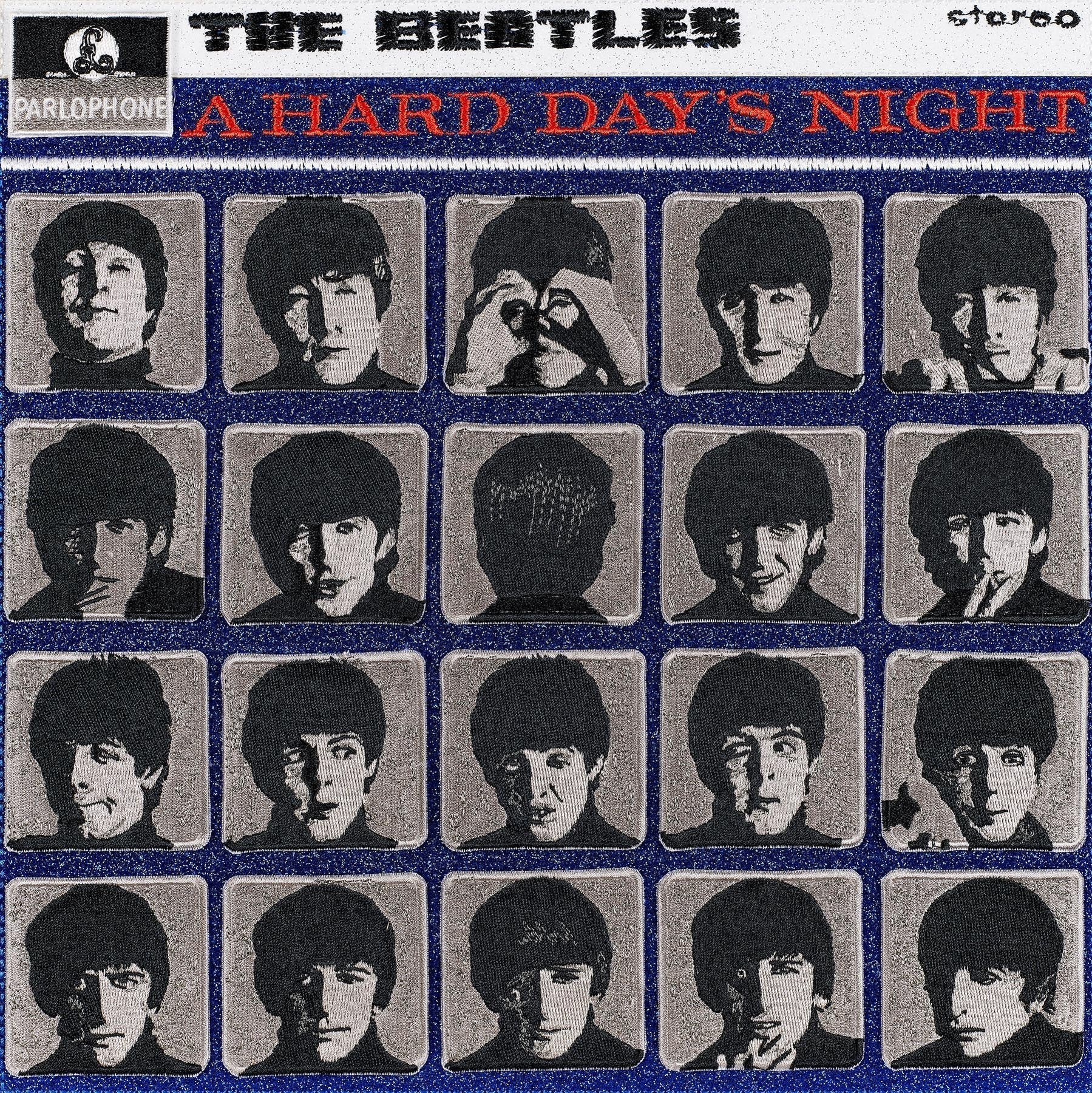 "It seems like the Beatles had at least 2 different covers for all of their albums. A Hard Day's night is no exception. The United States release is the red version that I had previously released. The import is an entirely different creature. This version features the title bar with 20 portraits of The individual Beatles, 5 of each member. The first step I did with this album was to create 20 individual patches of the portraits. These were a challenge to re-create since they are very small and are in black and white. The album itself was created in a series of appliqués with the lettering being directly embroidered through the album. Once completed, the patches were collaged onto the surface." – Stephen Wilson