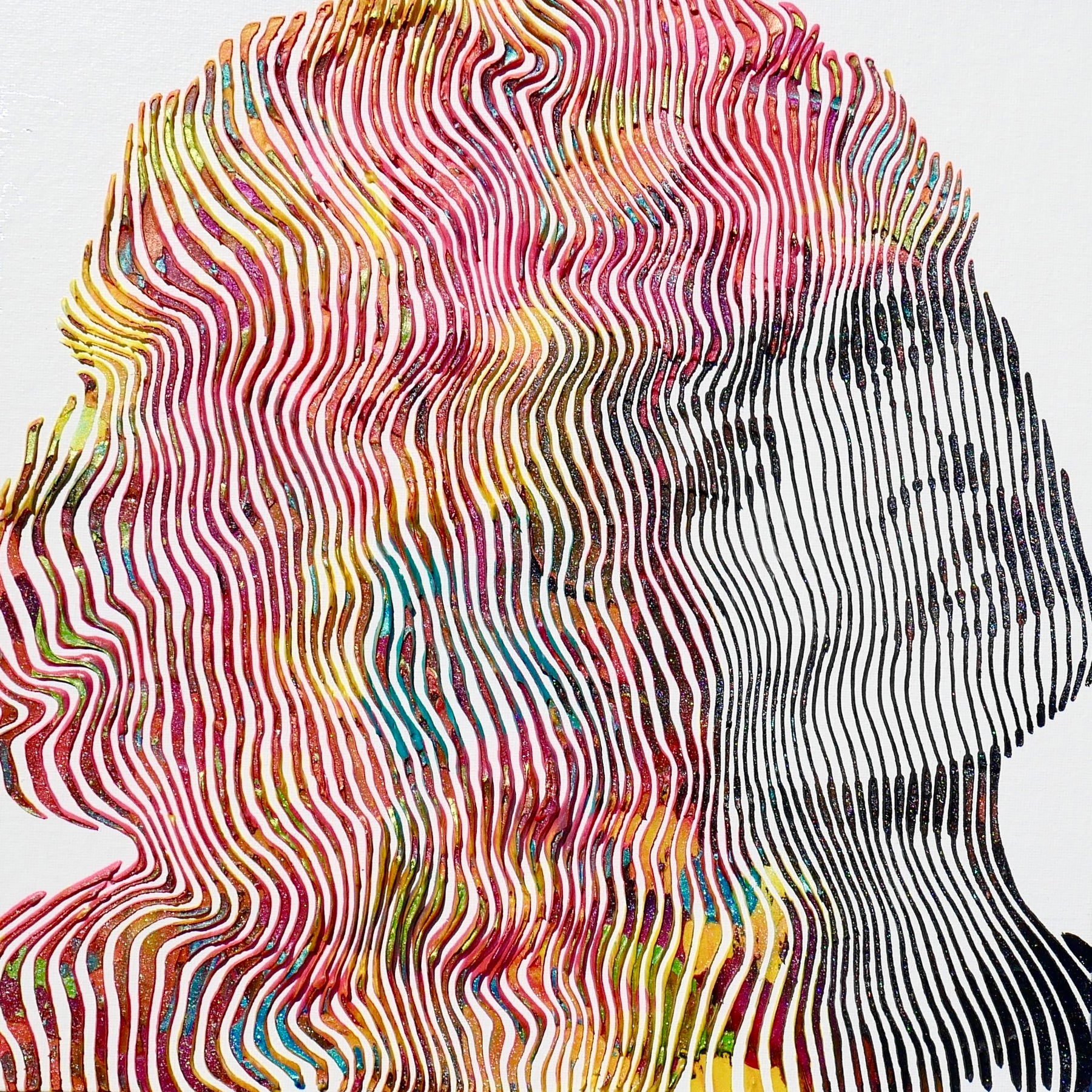 Virginie Schroeder's work is a mix of pop, street, and kinetic art that pays homage to contemporary icons. Her paints are applied with a knife, brush, and syringe that are delicately blended to bring out colorful details full of depth. Her work is conceived line by line; painted, and sculpted with patience and a lot of passion. This series is inspired by the kinetic art movement which allows us to experience the work from several angles.