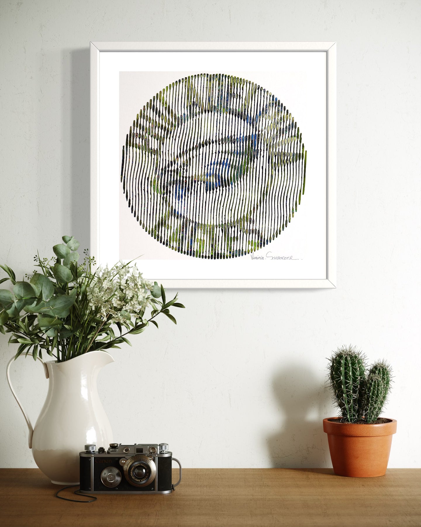 Virginie Schroeder's work is a mix of pop, street, and kinetic art that pays homage to contemporary icons. Her paints are applied with a knife, brush, and syringe that are delicately blended to bring out colorful details full of depth. Her work is conceived line by line; painted, and sculpted with patience and a lot of passion. This series is inspired by the kinetic art movement which allows us to experience the work from several angles.