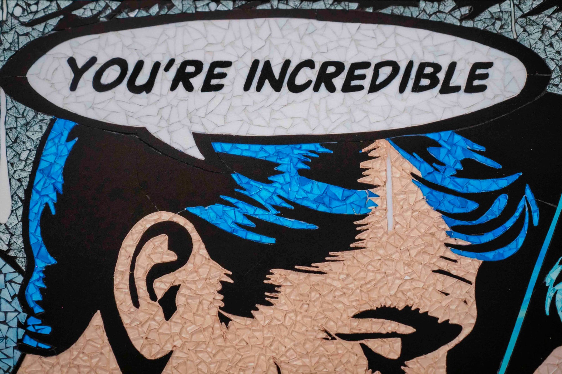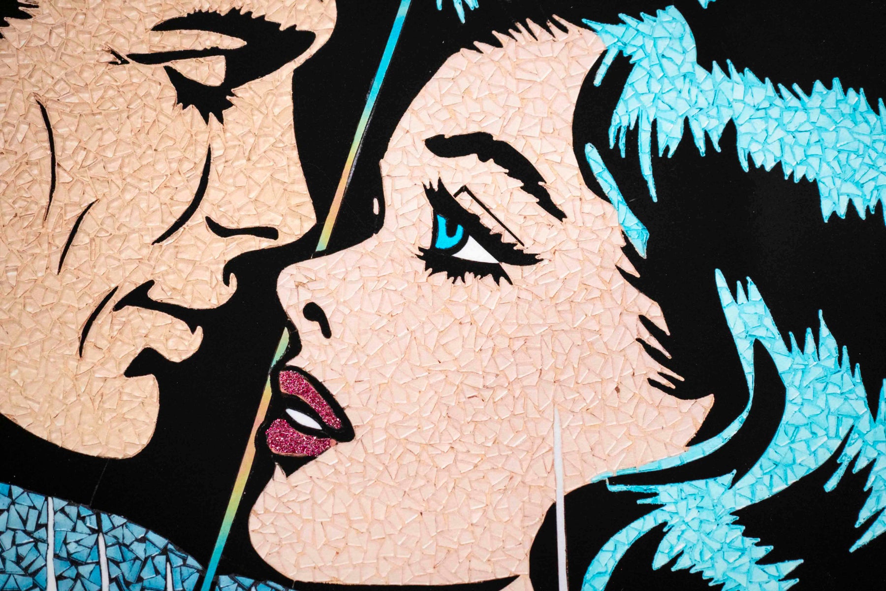 Sarah Fishbein, a contemporary glass mosaic artist based in the Atlantic Highlands of New Jersey, has been pushing the boundaries of visual art for nearly 20 years. Initially grounded in editorial video production, Fishbein artistic journey has led her to embrace the bold, graphic style of Lichtenstein Pop Art Mosaics. She infuses her mosaics with the vibrant, comic-book aesthetic of 1950s and romance comics, creating striking reinterpretations of pop culture through the timeless medium of glass.