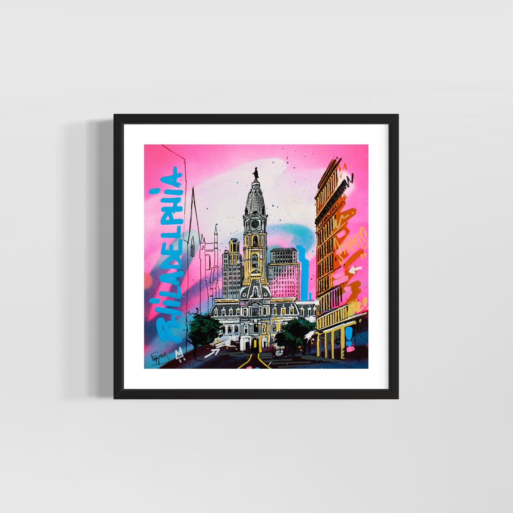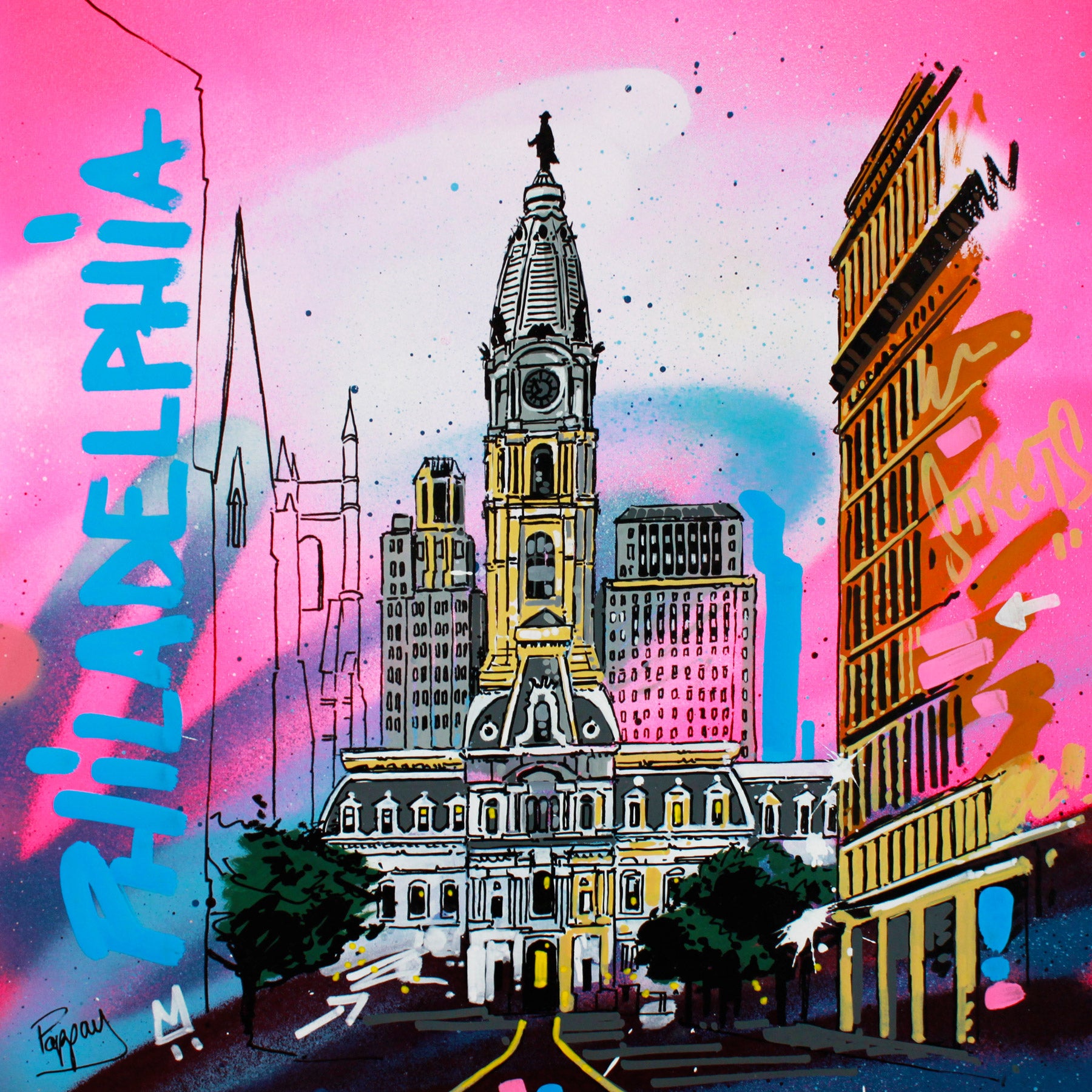 Philadelphia building urban graphic landscape graffiti marker style City hall center downtown
