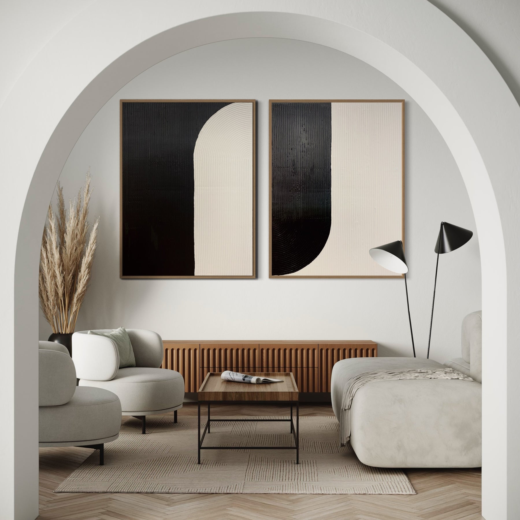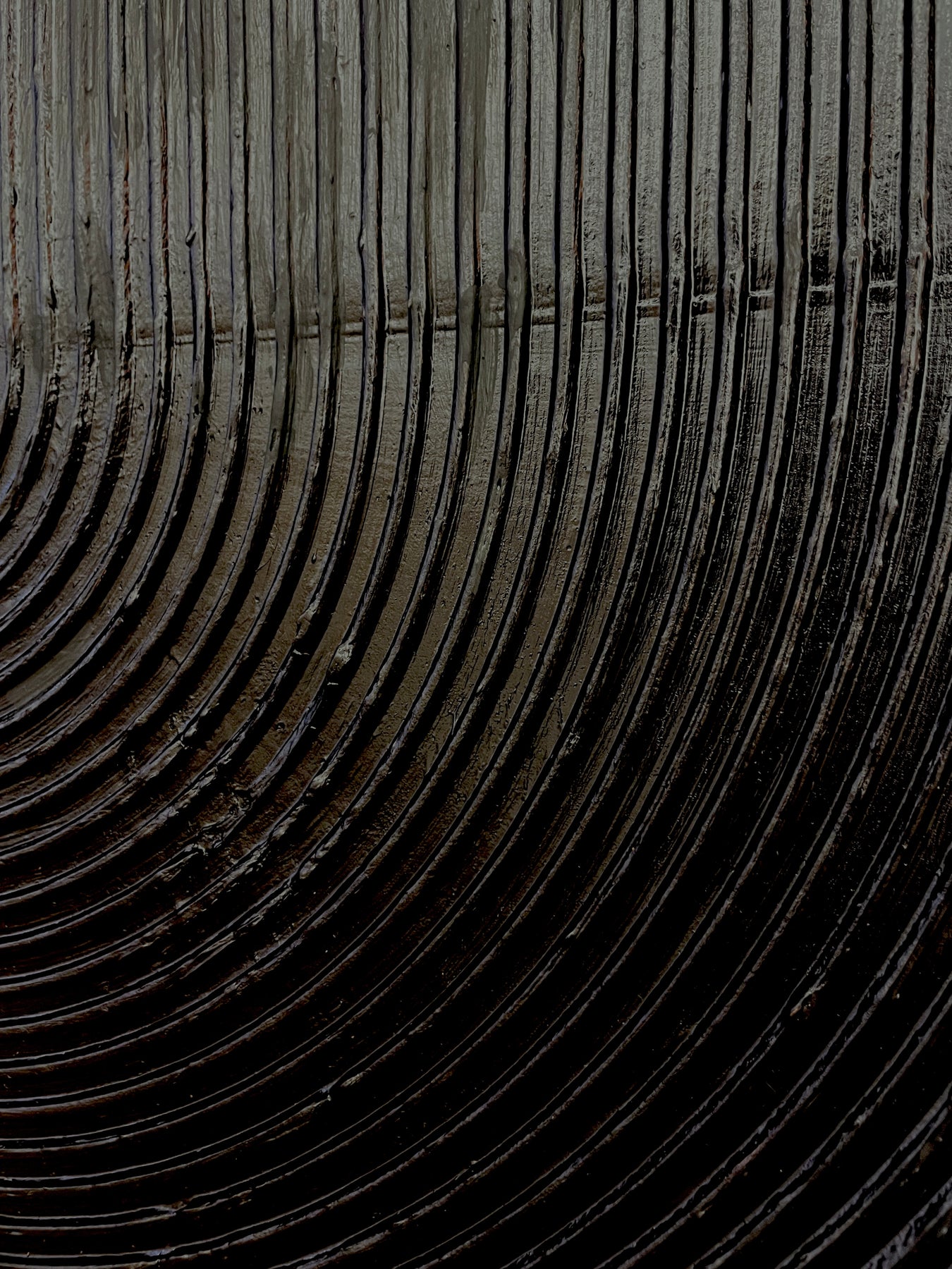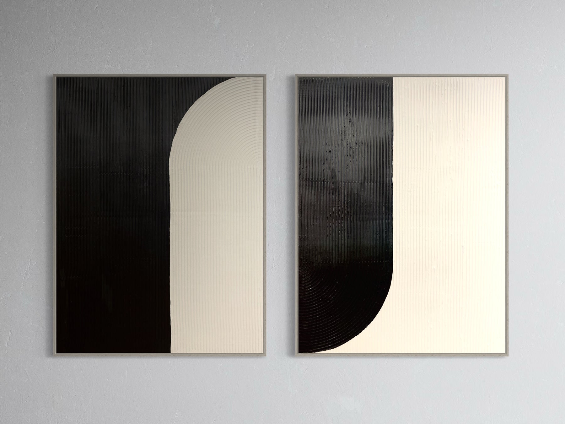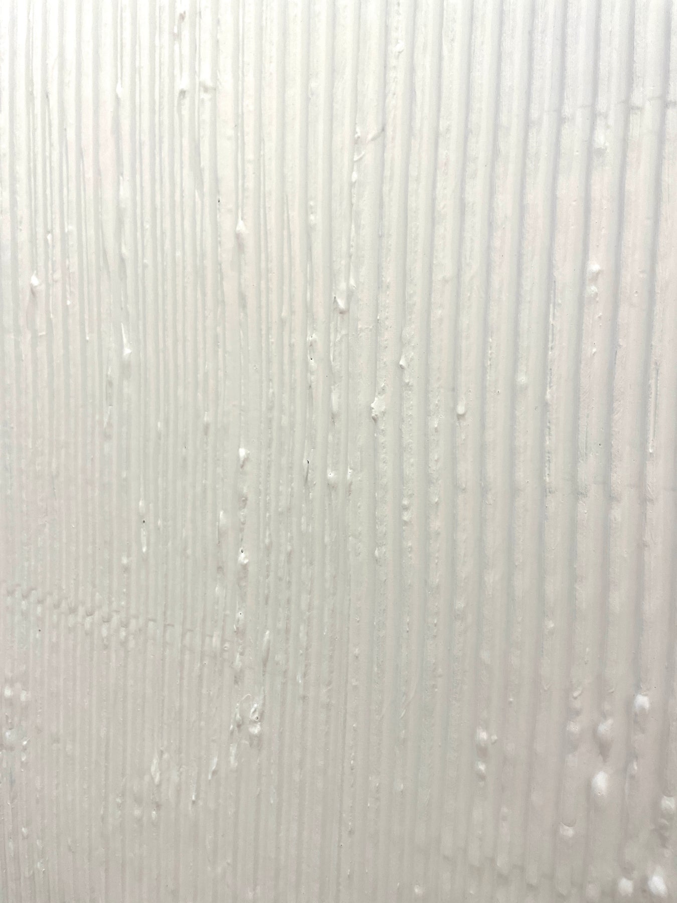Jerilee, a Philadelphia-based artist working under the name ‘Lee in Cerulean’, creates striking minimalist pieces. For Lee, simple curves, asymmetry, and overlapping forms reflect the beautiful world around us—and find, within our surroundings, the continuity, serendipity, and at times mundane nature of everyday life. Deriving from the Japanese Wabi-Sabi philosophy’s embrace of imperfection, highly textural pieces show Lee’s freeform strokes, using a blend of joint compound, acrylic paint, and a myriad of other media. Under this philosophical orientation, ridges and built-up materials are a reminder that we continue to evolve, just as nature does.