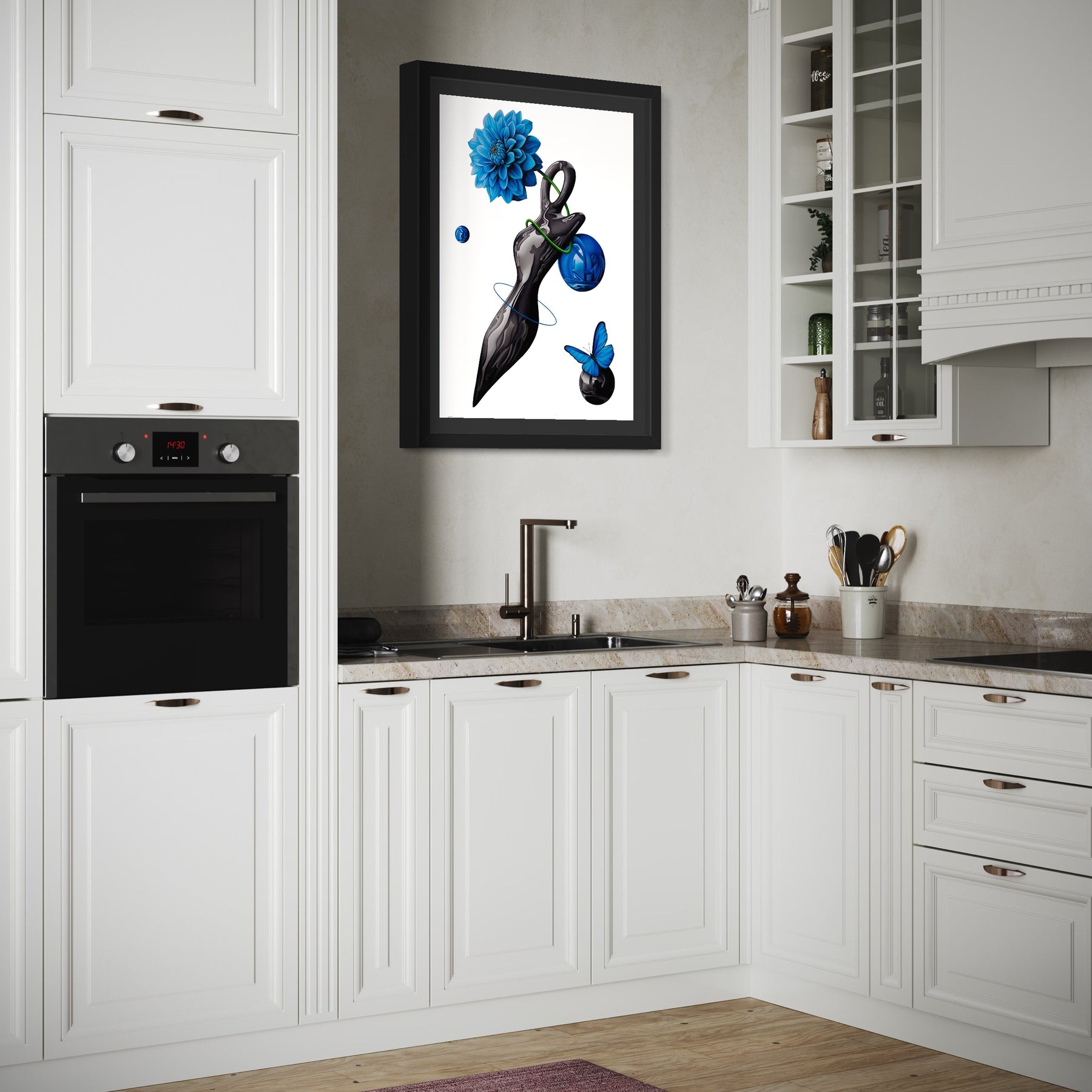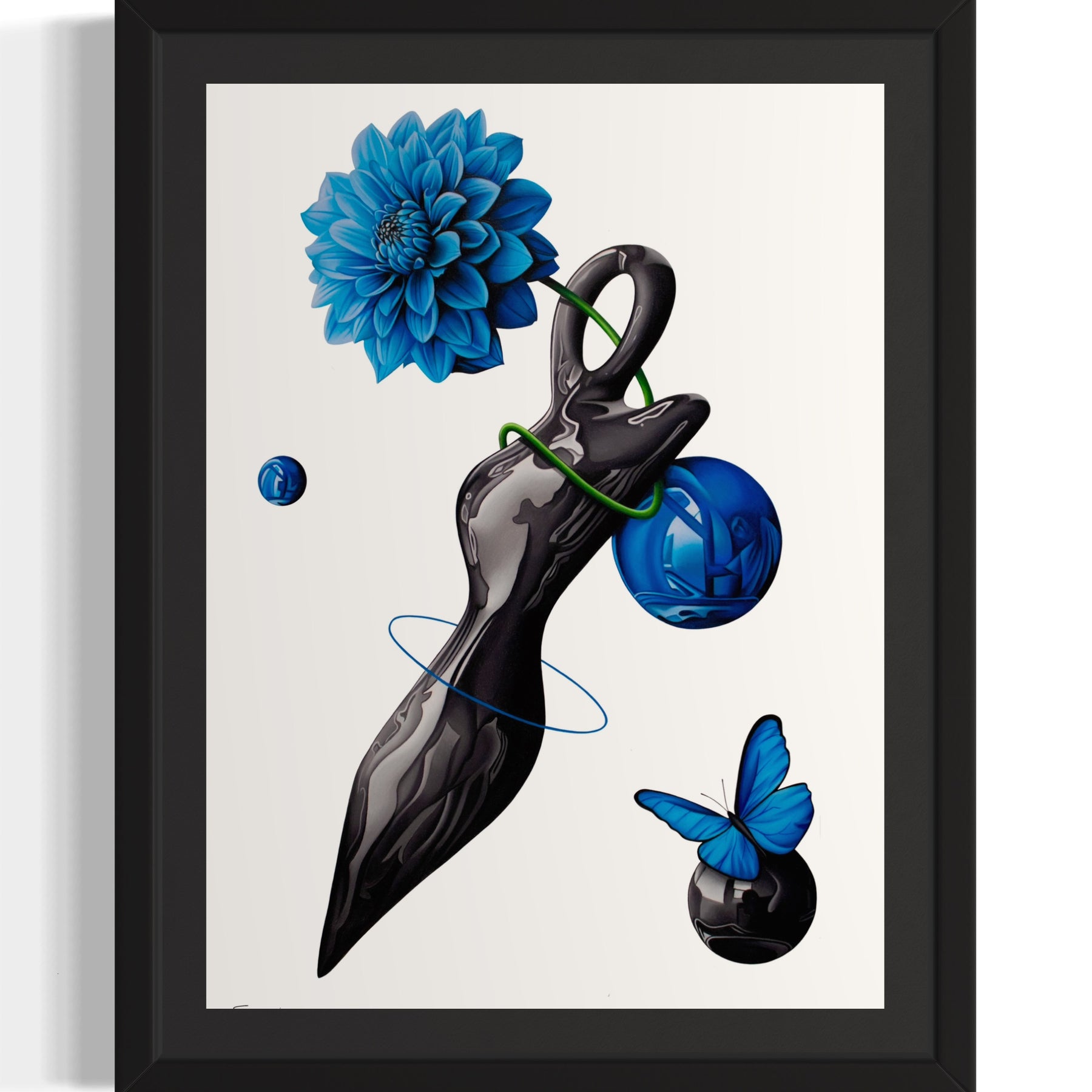 Black frame, wired and ready to hang