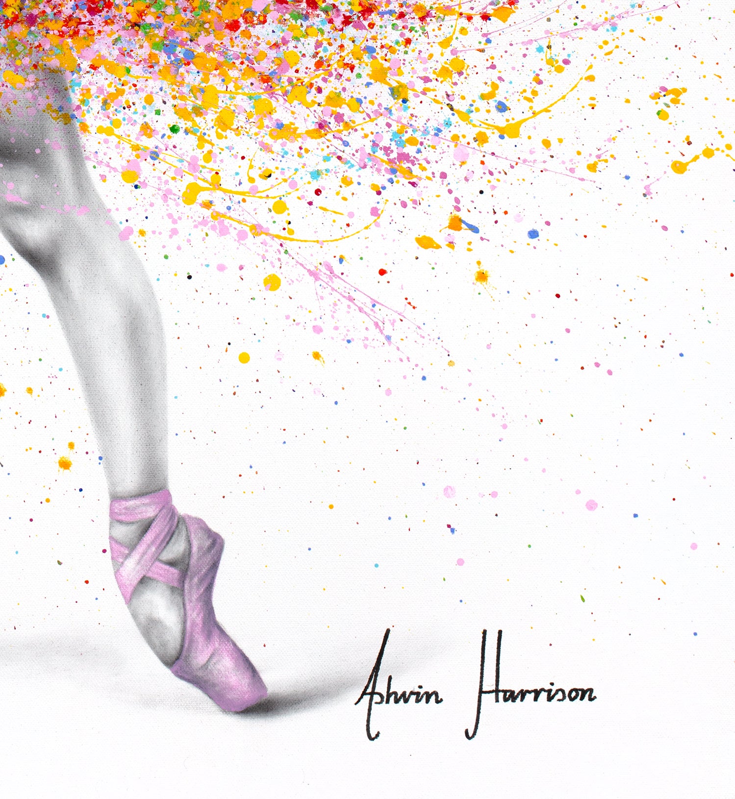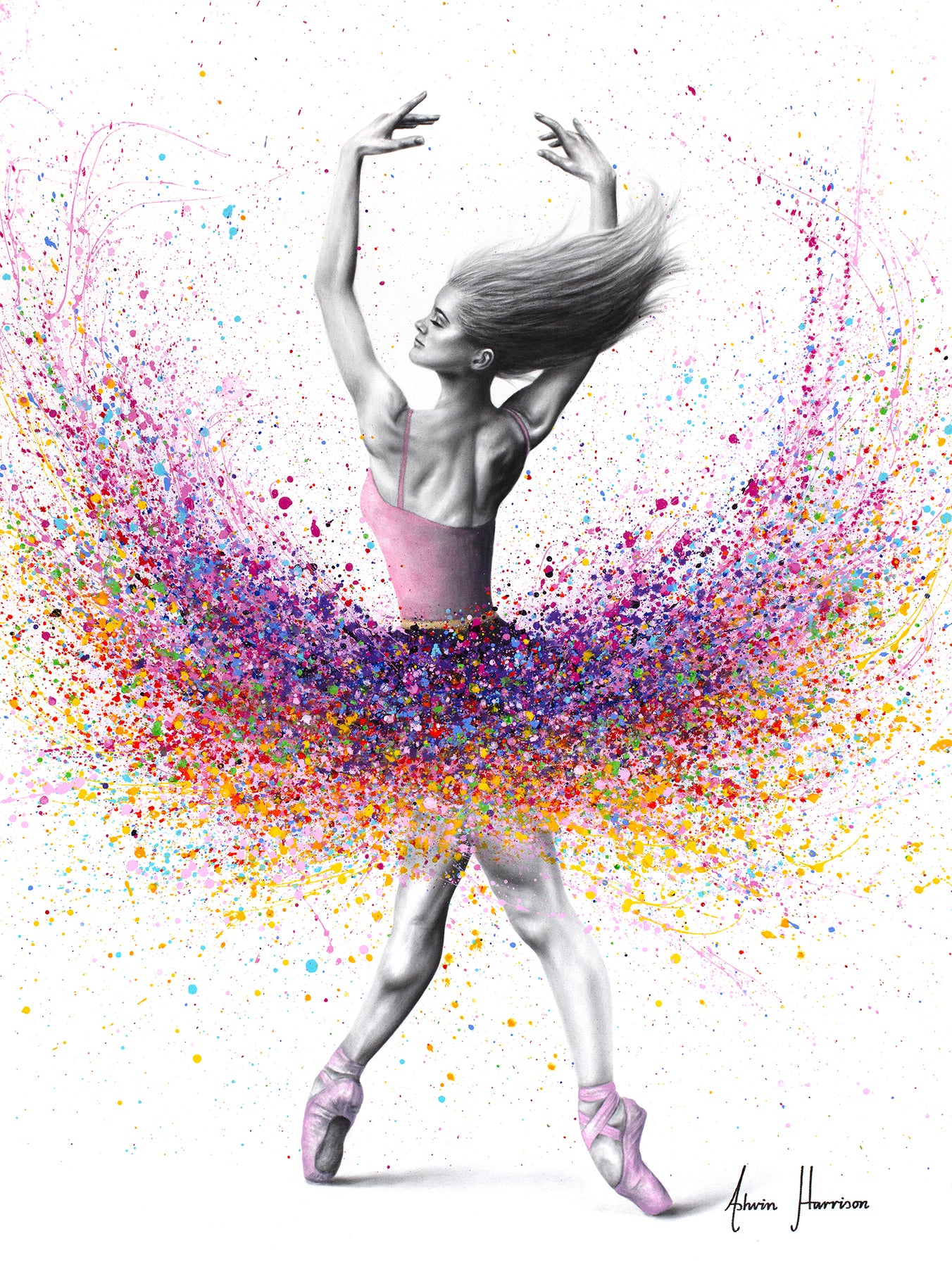 Working with charcoal dust powder, acrylic, and oil, Ashvin Harrison’s contemporary artistic style is so musical that his figures almost literally dance off the canvas. Harrison has come to be known worldwide for his integration of contrasting mediums. The painter begins with the soft, sultry subtlety of brushed charcoal to create sensual, hyper-realistic figures with digital-like precision in black and white -- dancers, hummingbirds, planets, trees, and musical instruments to name the most iconic. From there, Ashvin splatters and paints this initial charcoal with many layers of color, creating a mystical chorus of beauty, sensation, and light.