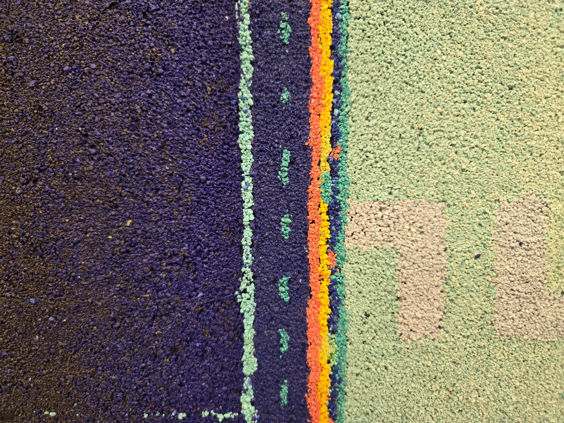 Bob Landström is an artist who primarily works with crushed, pigmented volcanic rock. His abstract paintings, with their highly granulated texture and color combinations, only achieved through such a medium, reconsider our relationship with meaning by eliciting the iconography of ancient languages, science, religions, and mysticism.