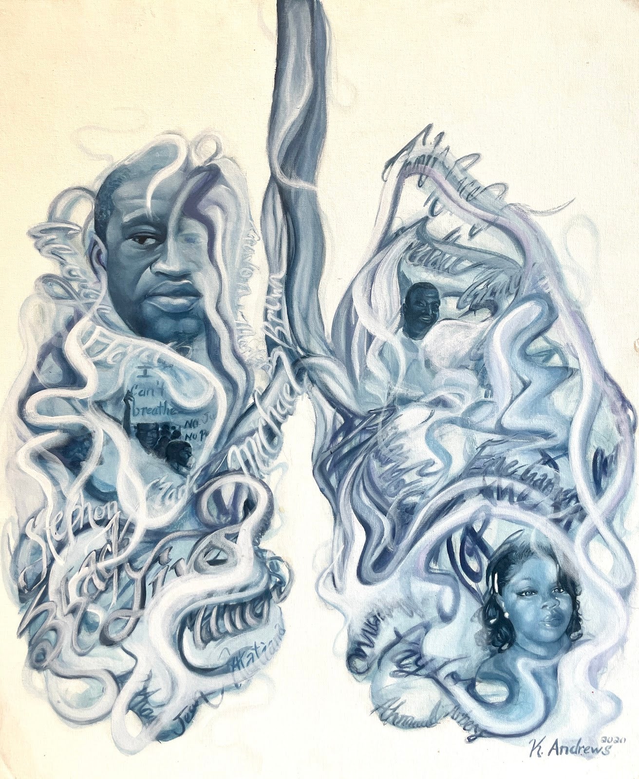 ‘I CAN’T BREATHE’ is a painting filled with profound messaging.  Keith Andrews painted this artwork during the George Floyd protests as his own quiet call for police reform in the face of ongoing police violence against African-Americans.