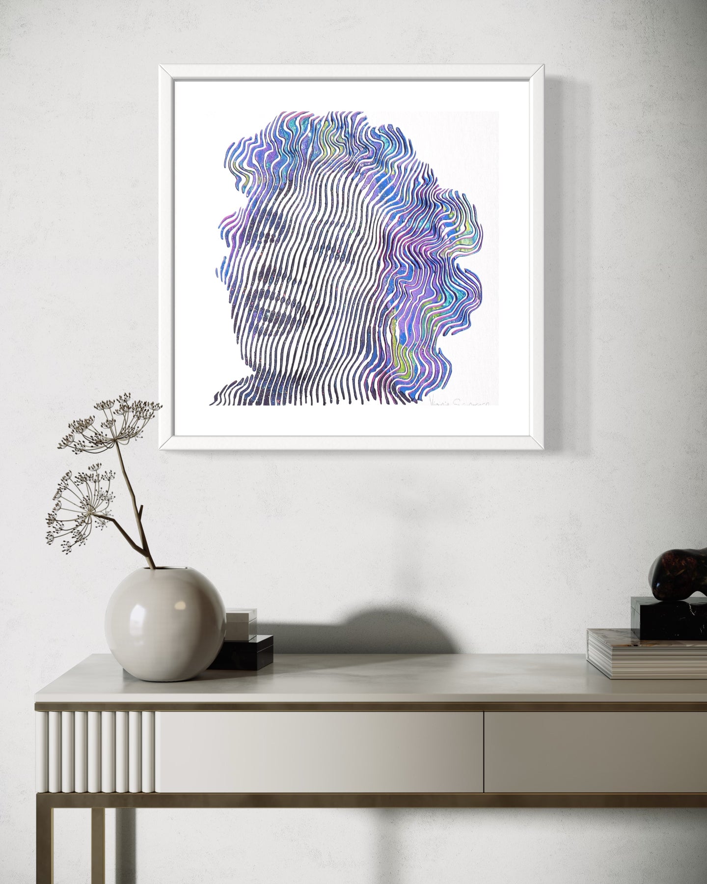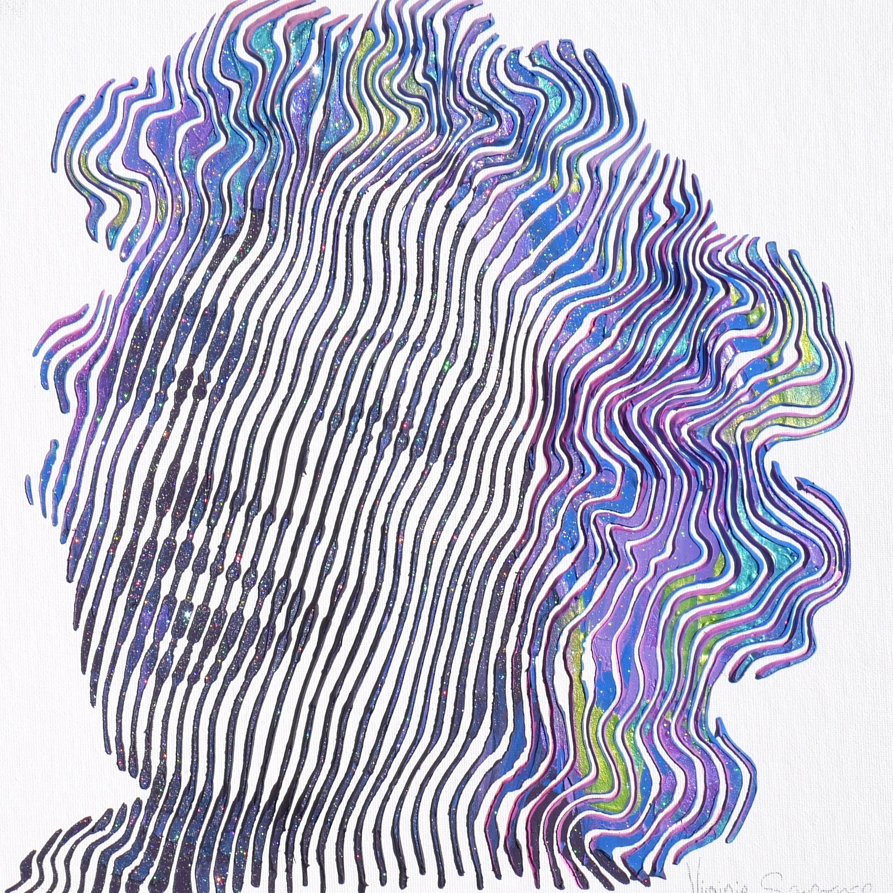 Virginie Schroeder's work is a mix of pop, street, and kinetic art that pays homage to contemporary icons. Her paints are applied with a knife, brush, and syringe that are delicately blended to bring out colorful details full of depth. Her work is conceived line by line; painted, and sculpted with patience and a lot of passion. This series is inspired by the kinetic art movement which allows us to experience the work from several angles.