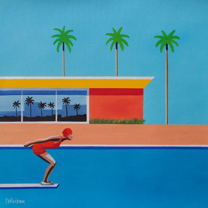 Carlo Trevisan is a poet and surrealist painter who creates work which he describes as 'clean, minimalist, and simple'. The French artist works tightly and intentionally, depicting isolated objects and characters against smooth balanced backgrounds. His oil paintings are reminiscent of a pleasant dream: they are familiar, warm, non-sensical yet perfectly convincing.