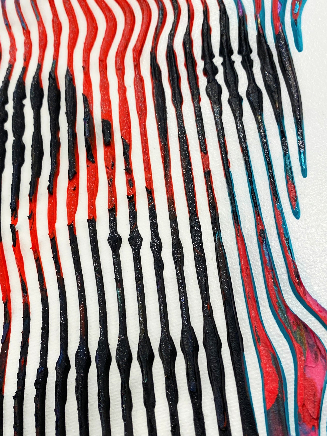 Virginie Schroeder's work is a mix of pop, street, and kinetic art that pays homage to contemporary icons. Her paints are applied with a knife, brush, and syringe that are delicately blended to bring out colorful details full of depth. Her work is conceived line by line; painted, and sculpted with patience and a lot of passion. This series is inspired by the kinetic art movement which allows us to experience the work from several angles.