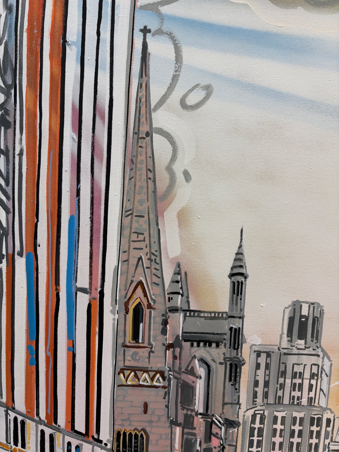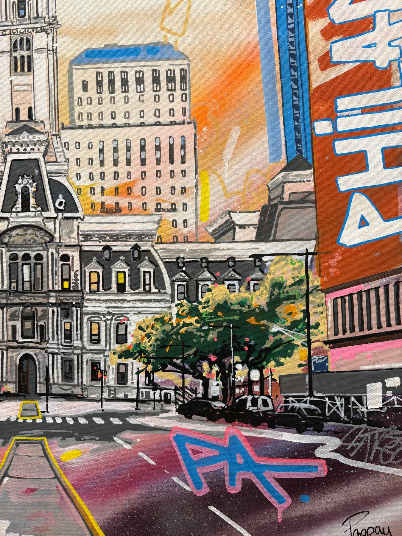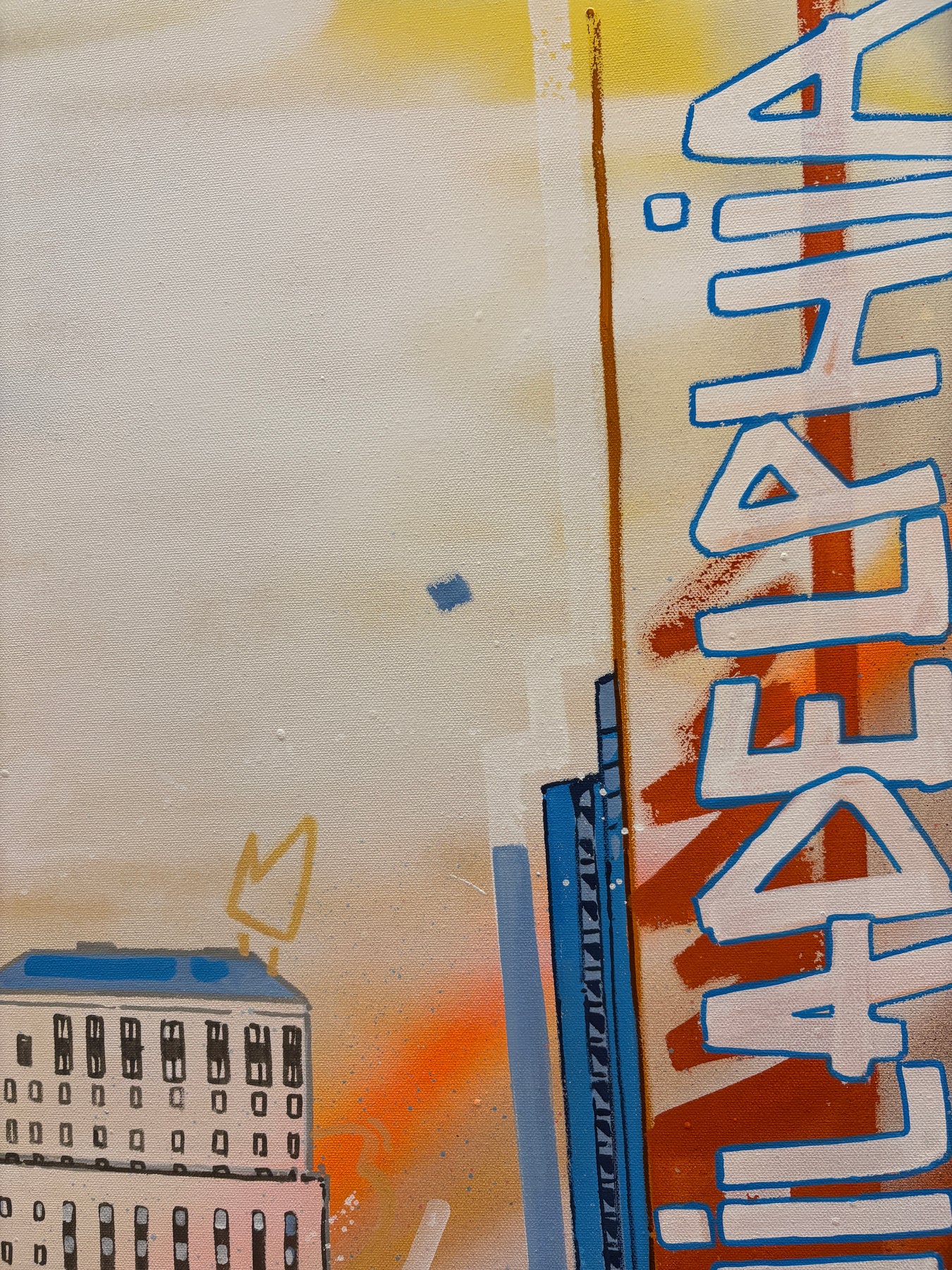 Pappay draws his inspiration from the chaos of cities and their architecture, as well as from graphic design and street art. He has always been fascinated by the relationship between humanity and its environment. The scenes represented in his compositions are devoid of any human presence, where time is suspended, objects and buildings are witnesses of life and history ready to come to life before our eyes. Deeply rooted in urban art, Pappay shines in street art by regularly creating murals.